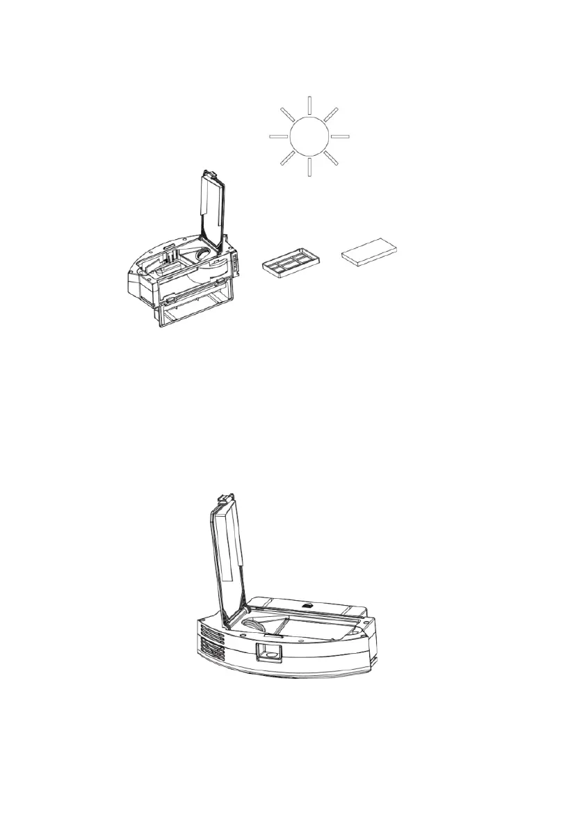 Dry the dust box and filter assembly, and keep it dry to ensure its