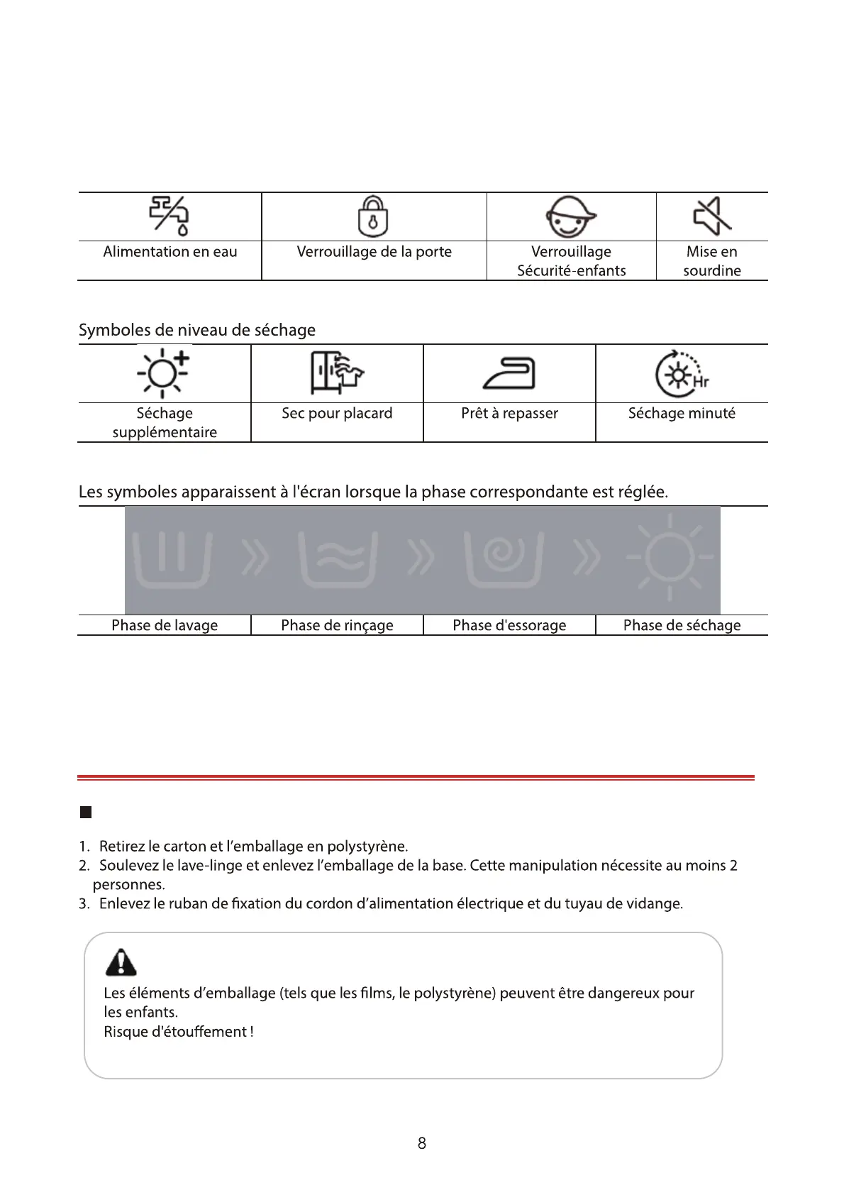 Veillez à ce que tous les éléments d’emballage restent hors de