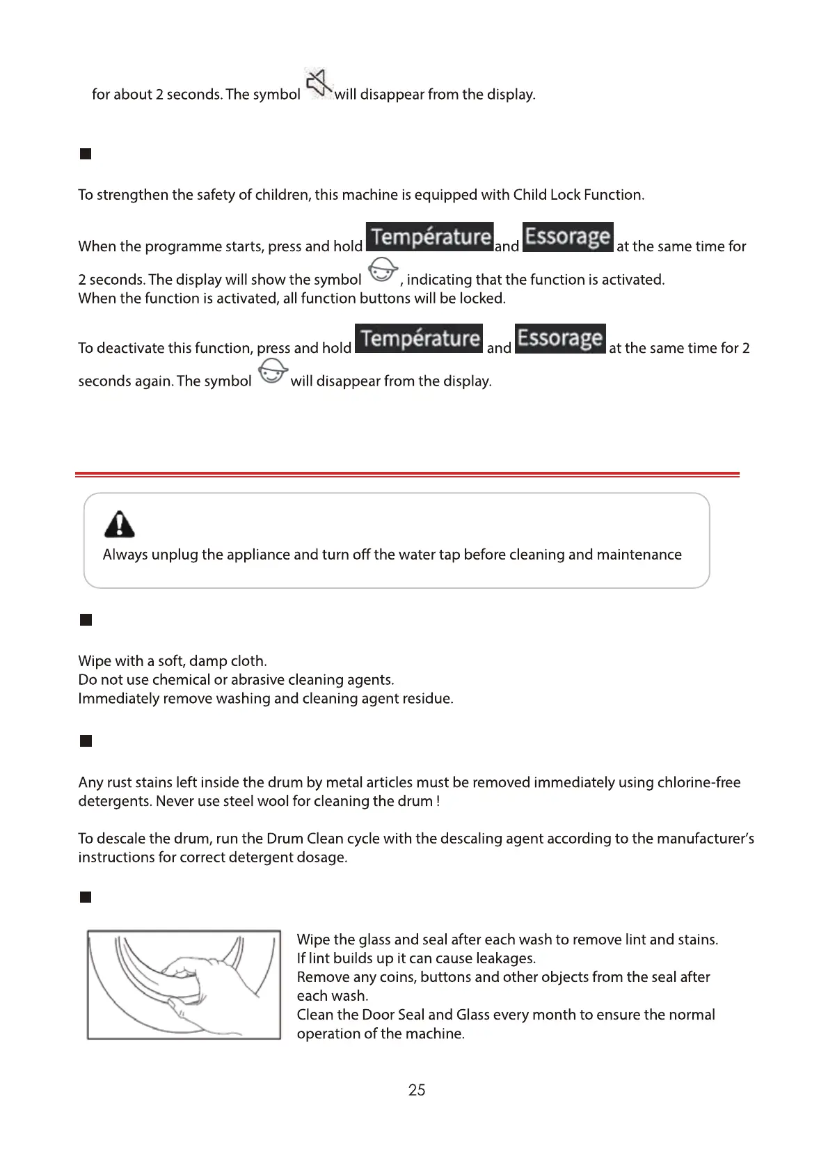 THOMSON THWD96140DGAD - Cleaning and Maintenance