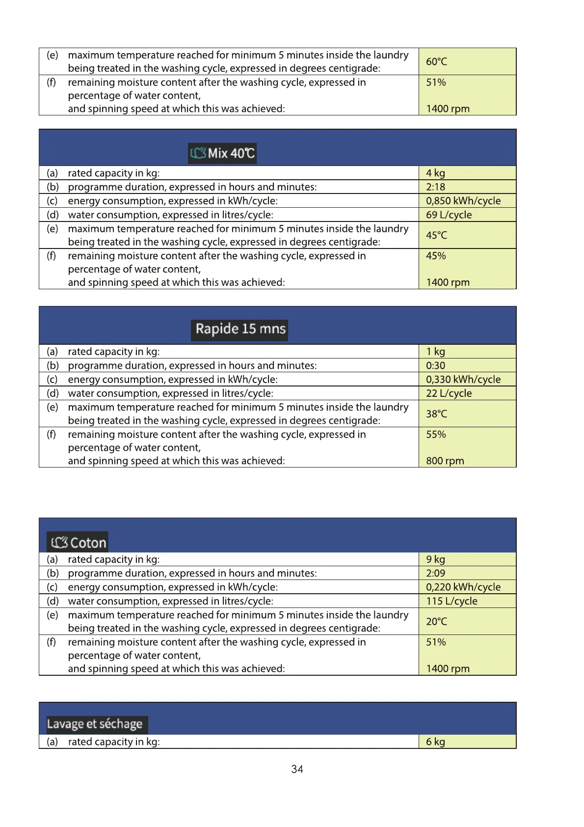 One programme for heavily soiled textiles (if present) at the rated capacity for this programme