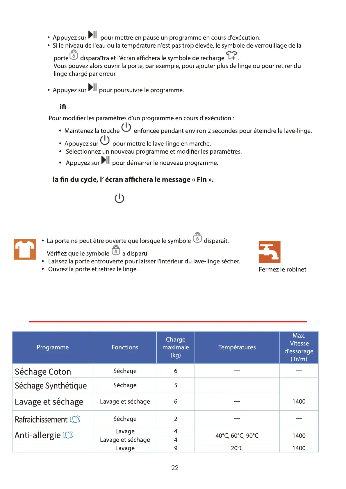 16. Ouvrez la porte et retirez le linge.