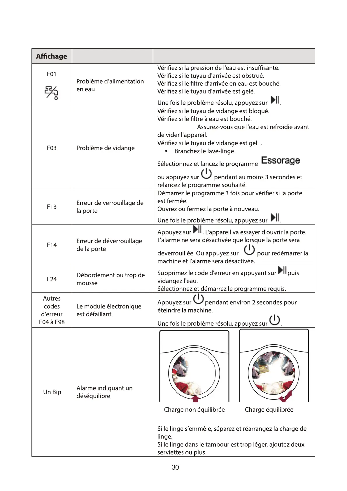 Codes d’erreur