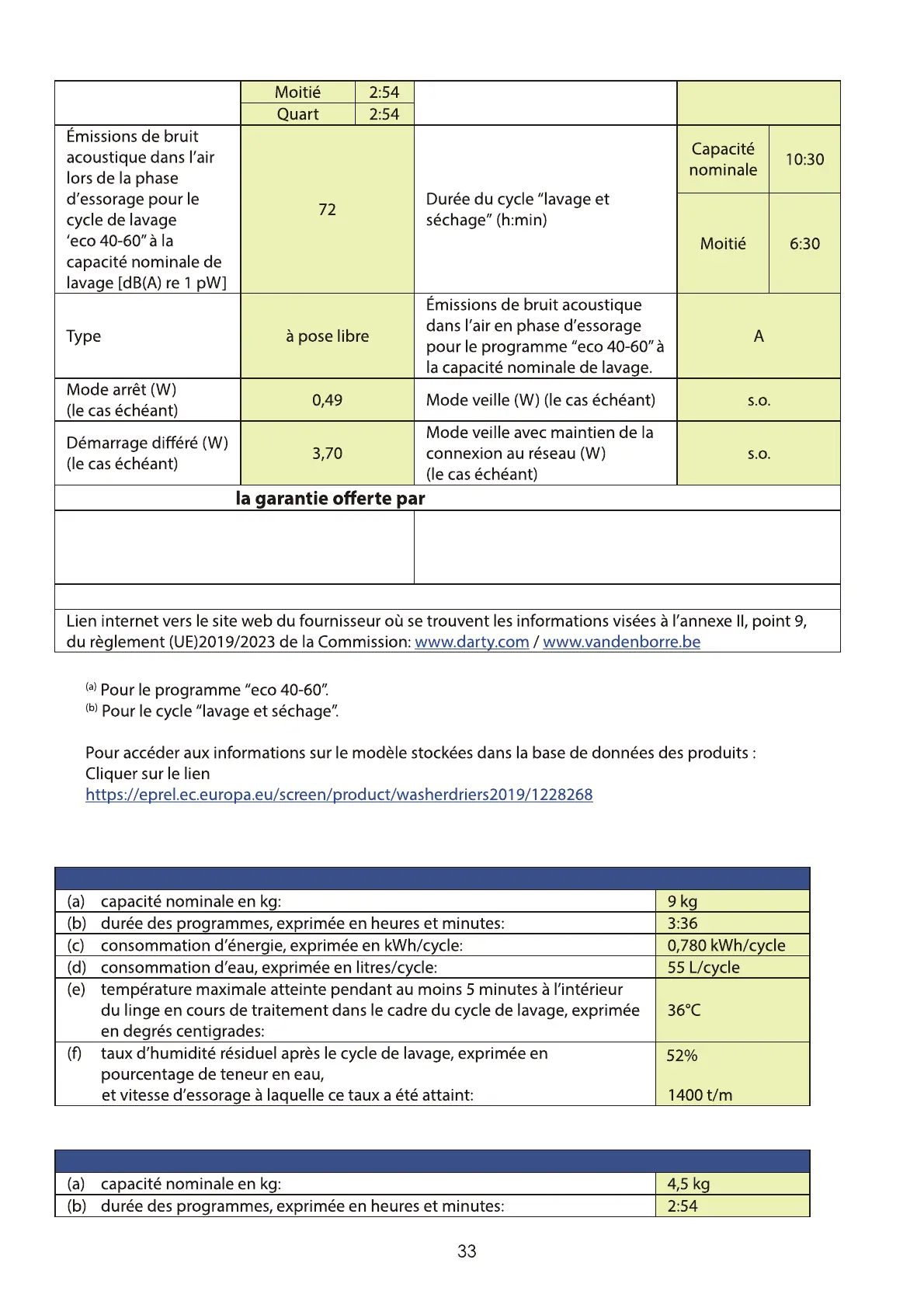Programme «eco 40-60» à la capacité nominale