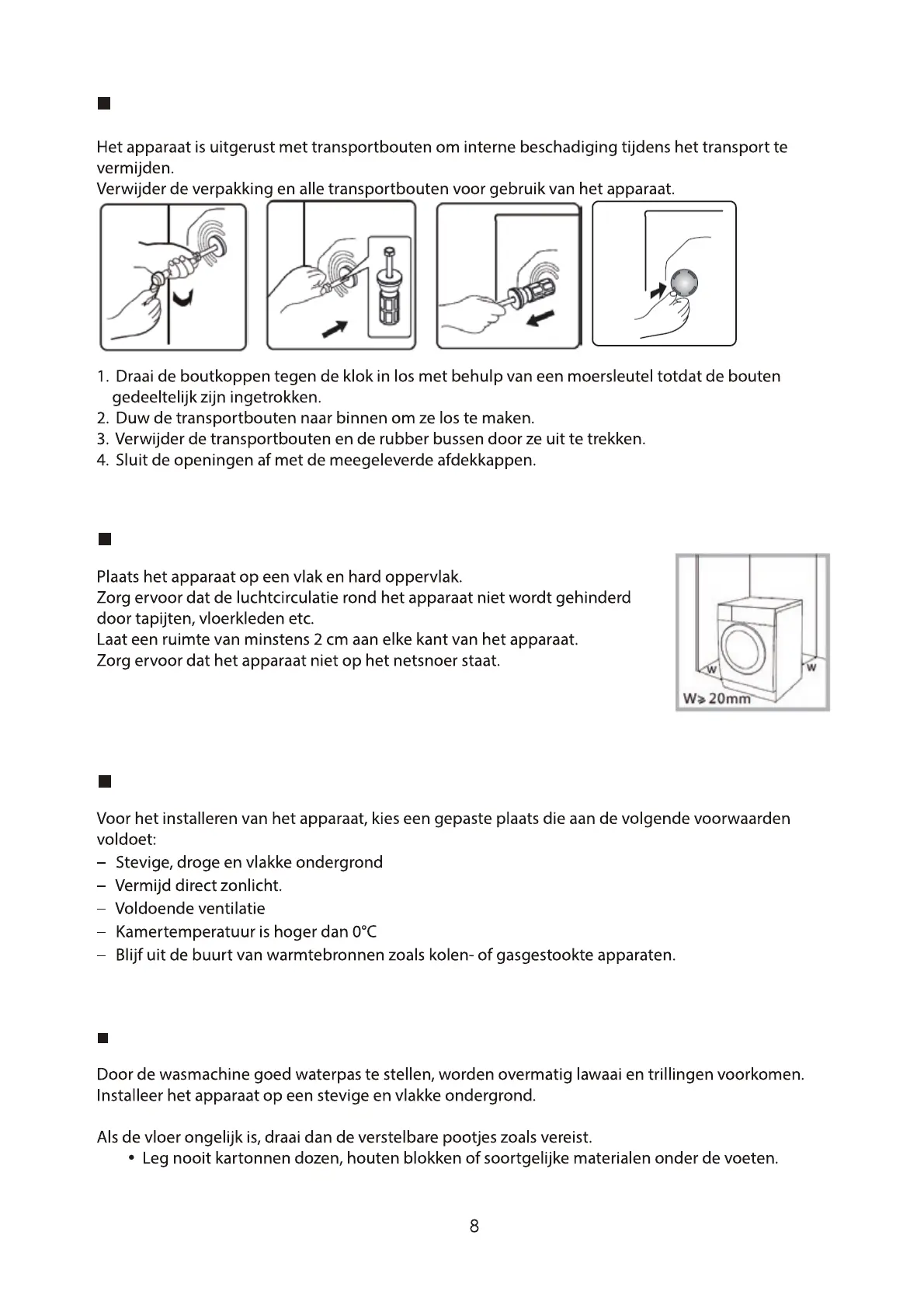 Het apparaat waterpas stellen