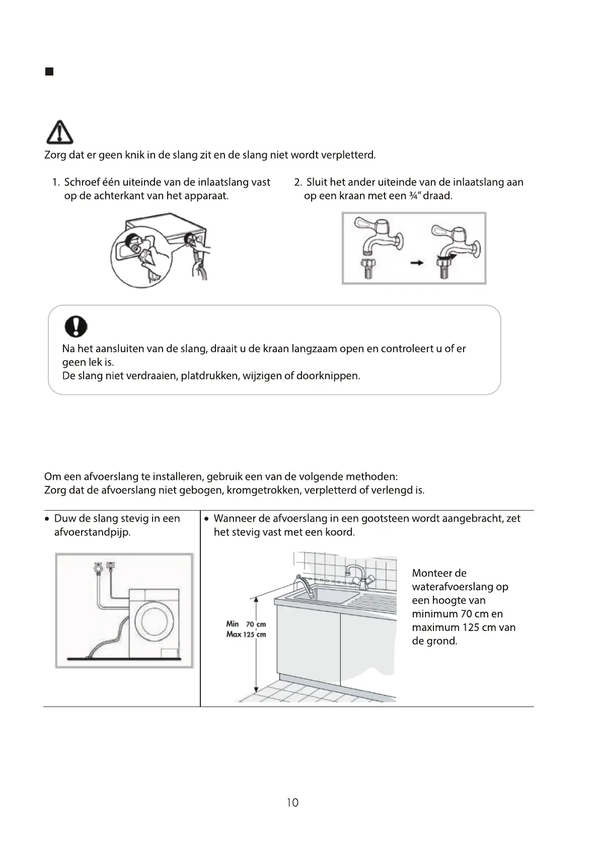 Het apparaat moet op de ko udwatertoevoer worden aangesloten.