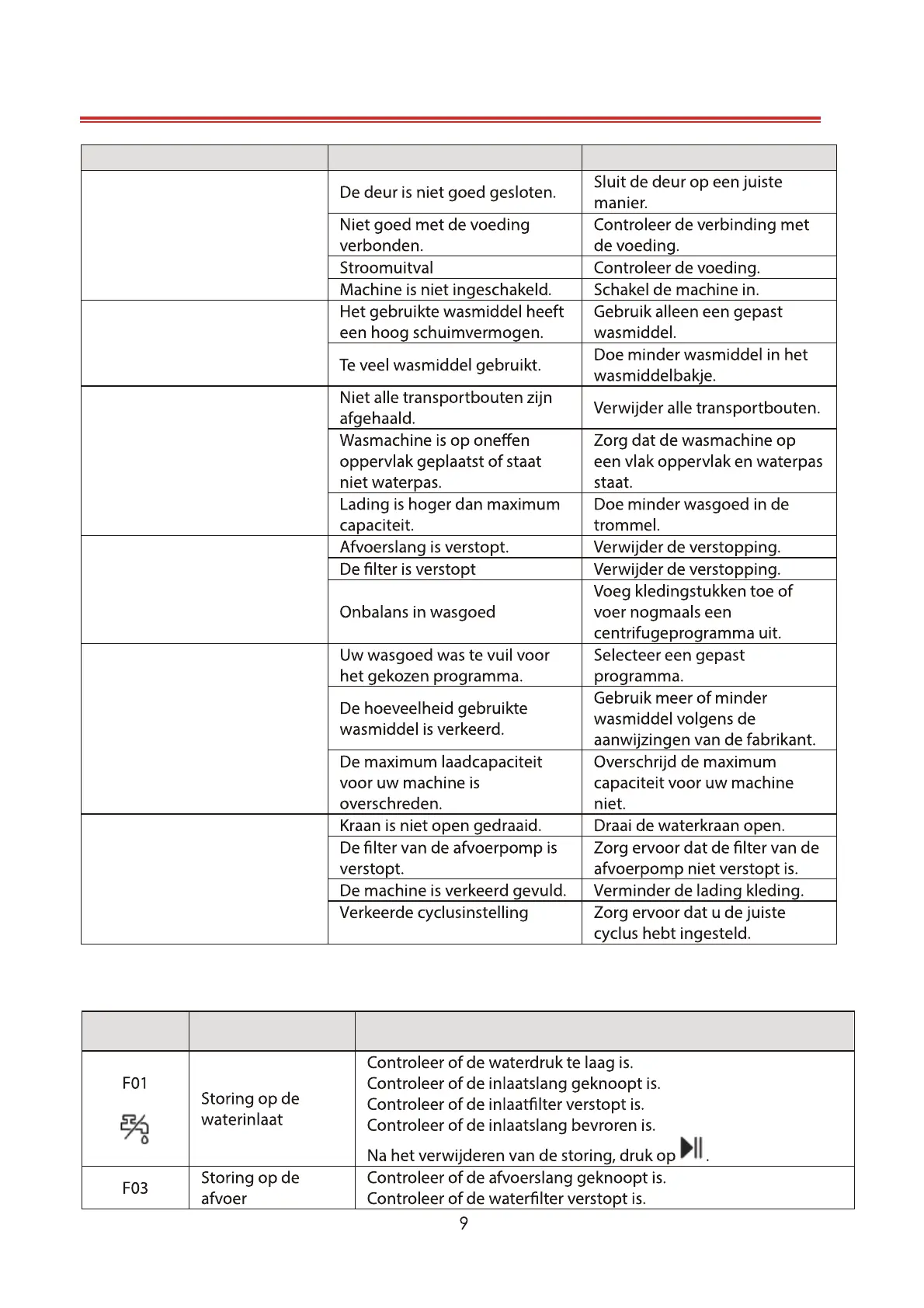 De wasmachine voert geen