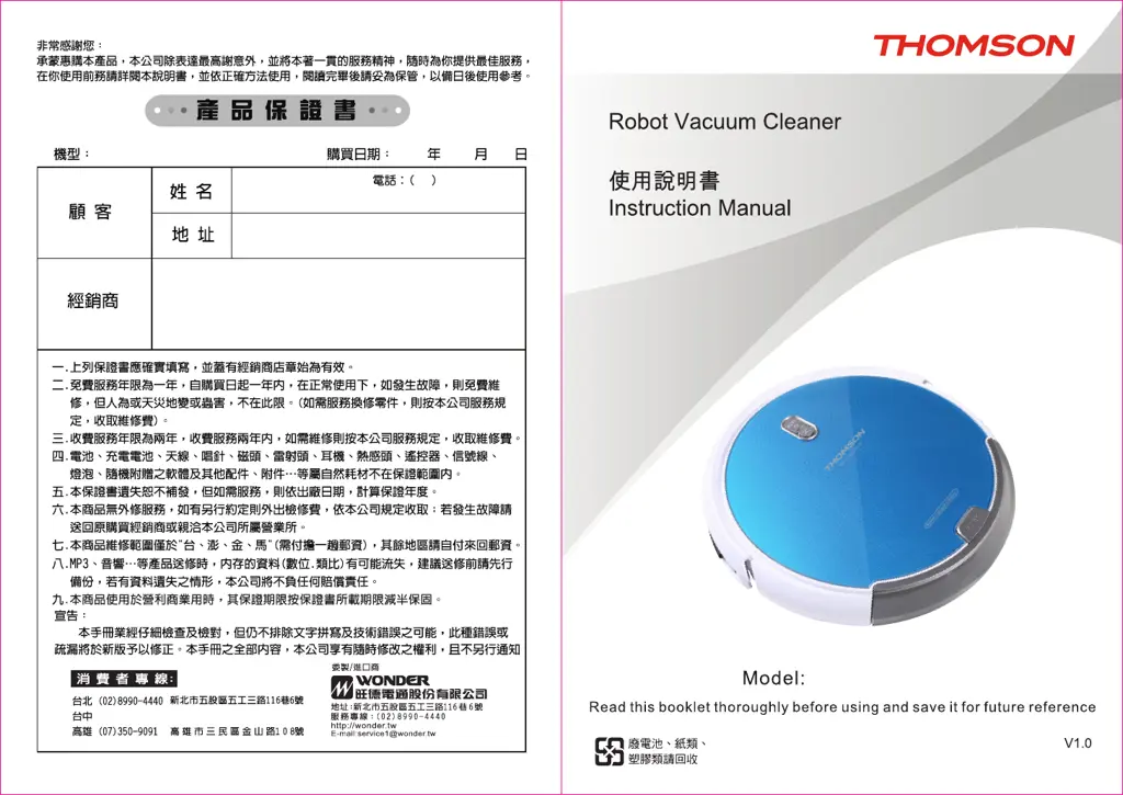 If your THOMSON Vacuum Cleaner is not charging, there could be several reasons. First, ensure that the main unit and the charger's charging pole are aligned properly. Another possibility is that the charger's power supply has been shut off, and the main unit's power switch has been turned on, leading to power consumption. In this case, it's recommended to keep the main unit in charging mode when not in use. If the batteries are deeply discharged, try to reinvigorate them by manually placing the main unit on the charger for three minutes, removing it, and repeating this process three times before charging normally.