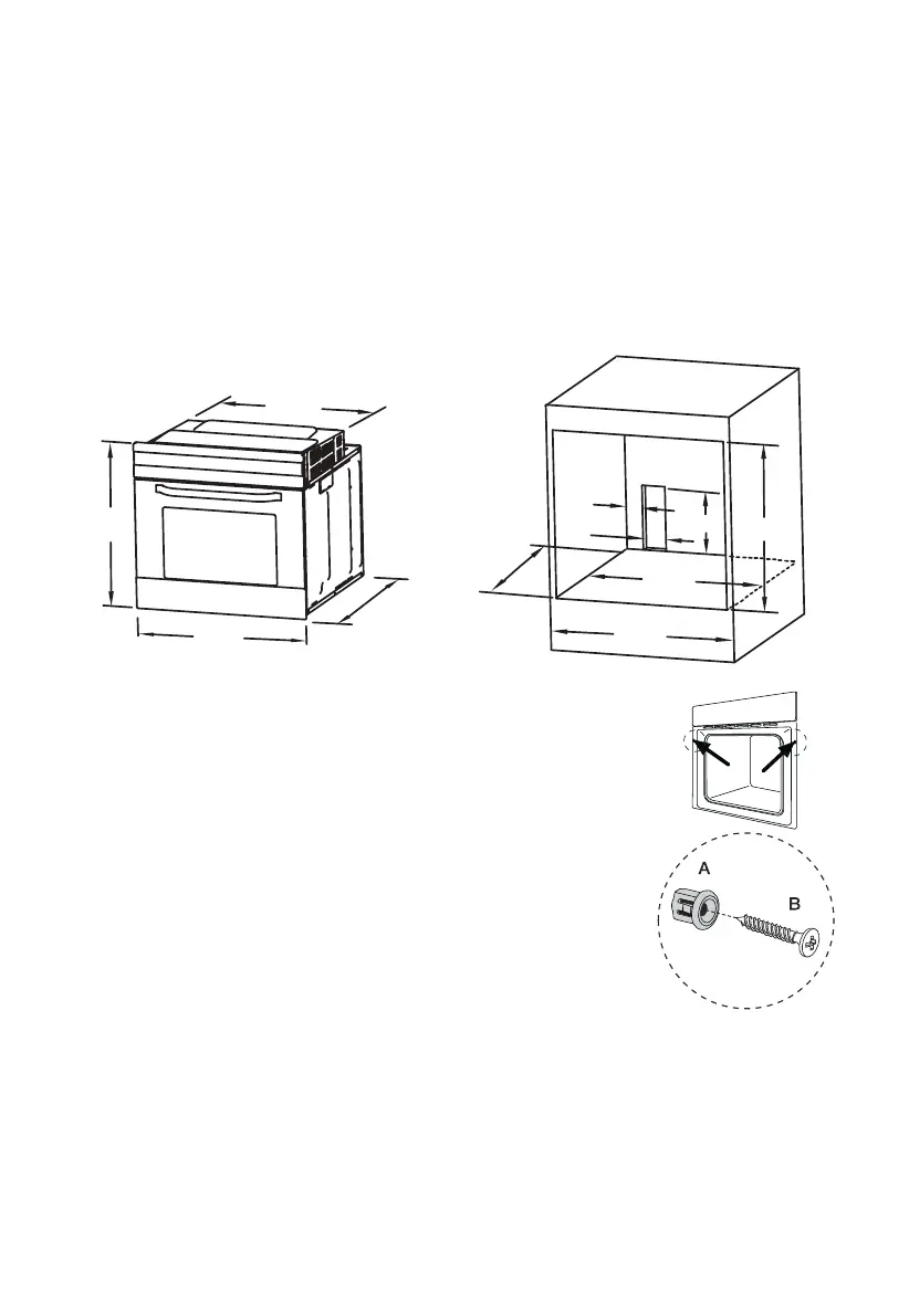The diagram below determines the correct dimensions to install the oven in a cabinet.