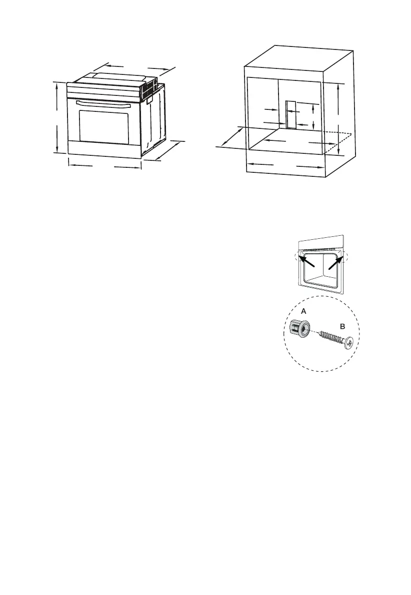3. Fixez le four dans le meuble avec deux supports (A)