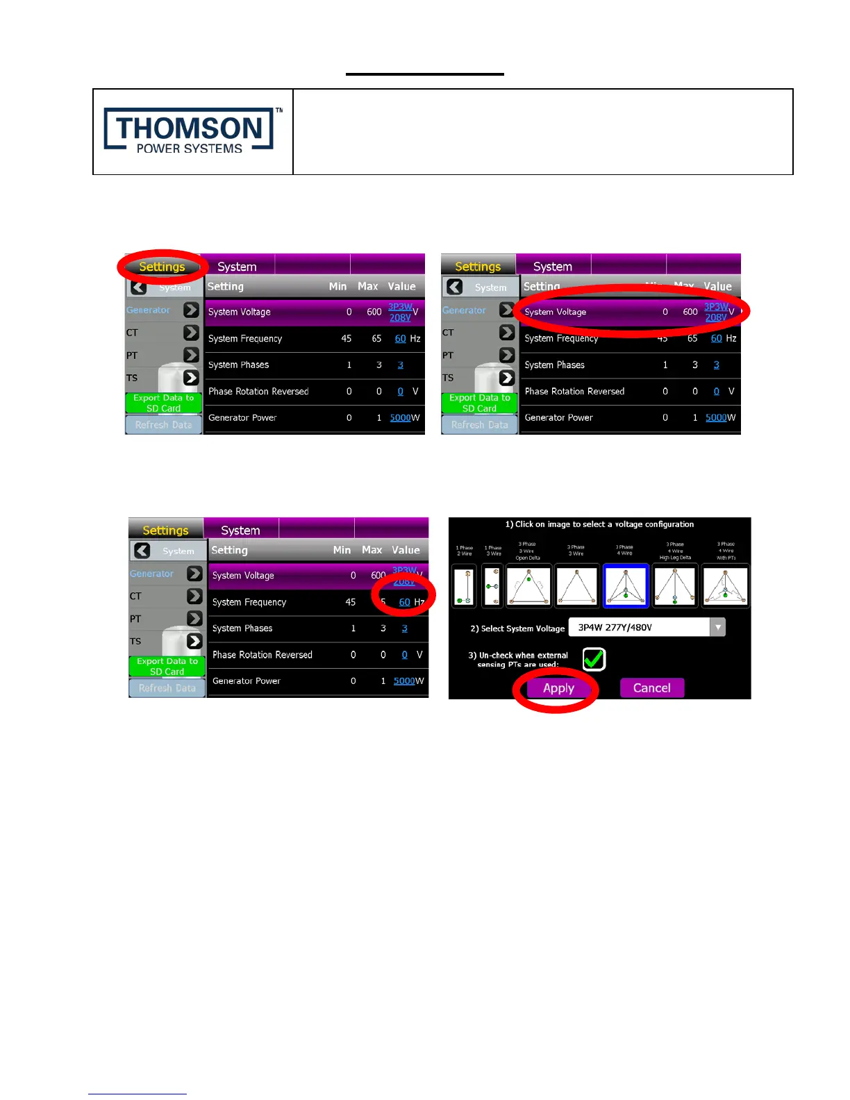 3. On the System Voltage Row, select the underlined System Voltage value and from the drop