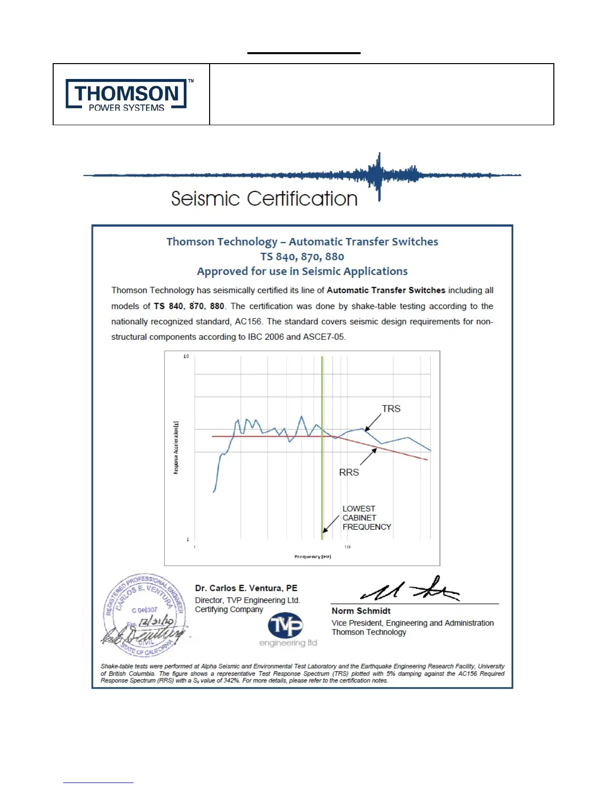 THOMSON TS 870 - Appendix C; Seismic Certification