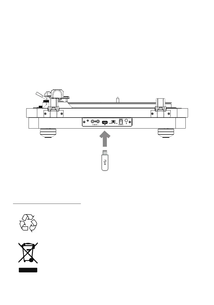 2. Inserte el soporte USB en la toma USB, ponga el aparato en modo tocadiscos y