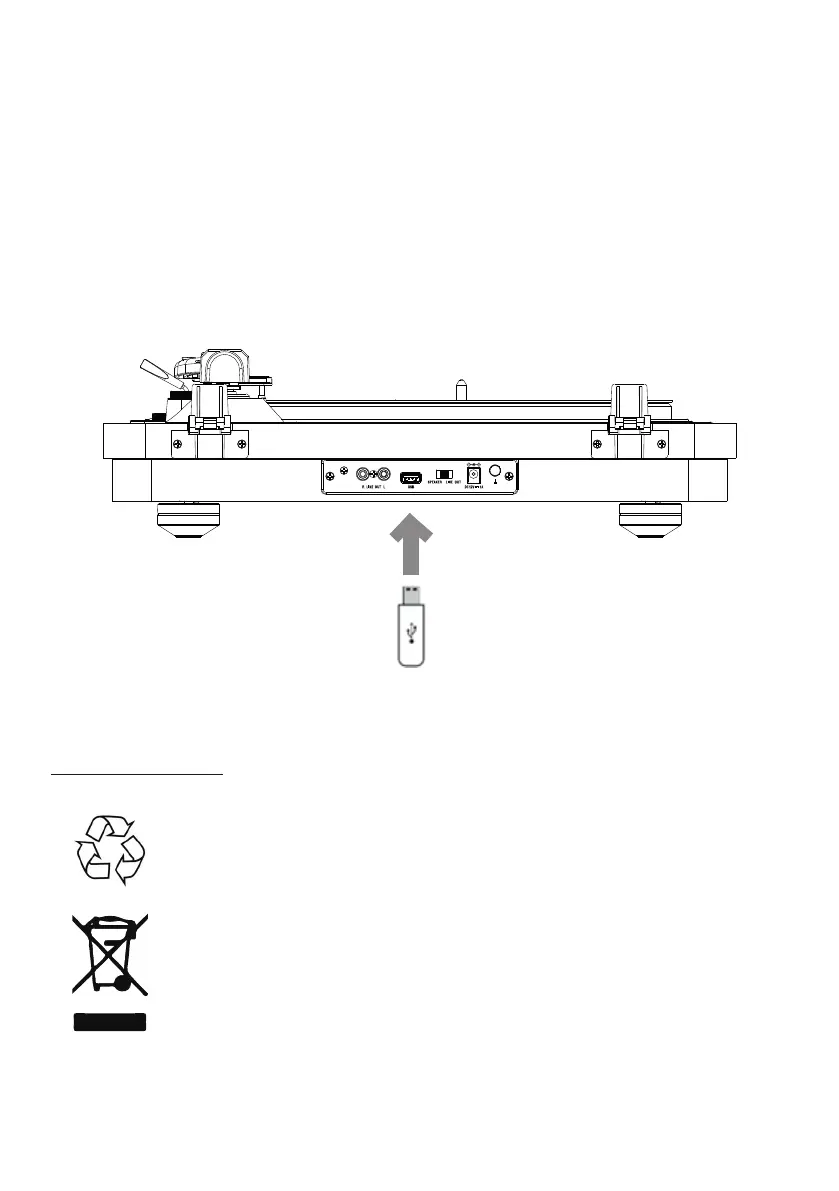 2. Inserire il supporto USB nella presa USB, mettere l'apparecchio in modalità giradischi