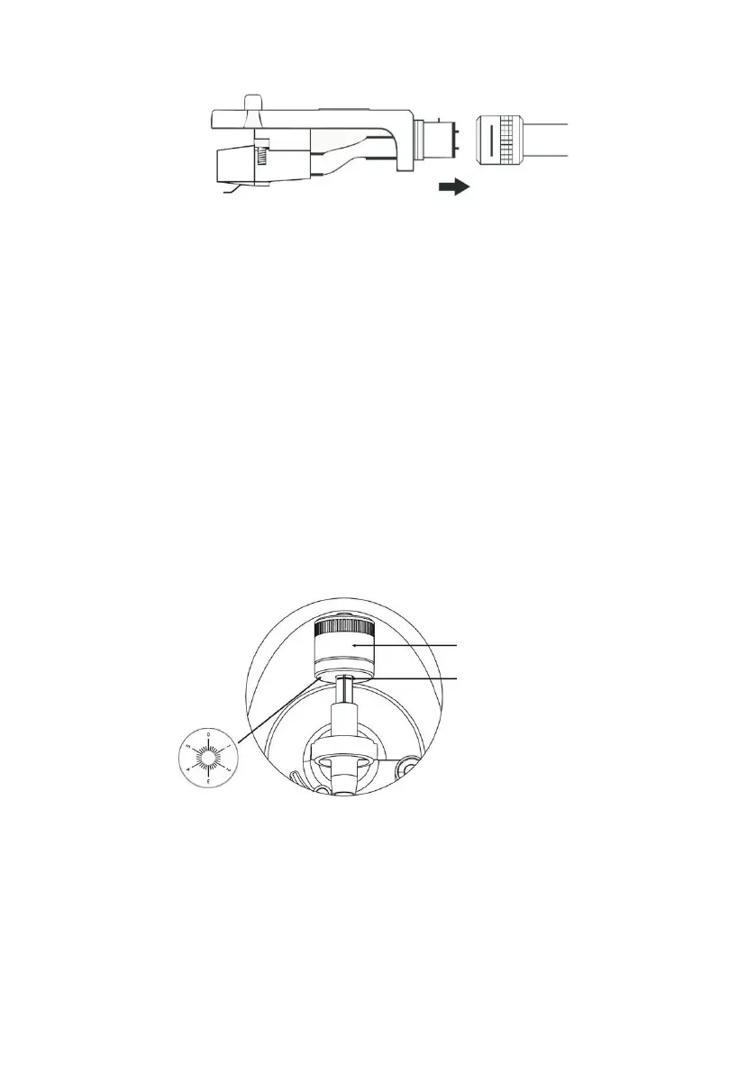 Tonarm. Drehen Sie dieses leicht und schrauben Sie es (gegen den Uhrzeigersinn) an