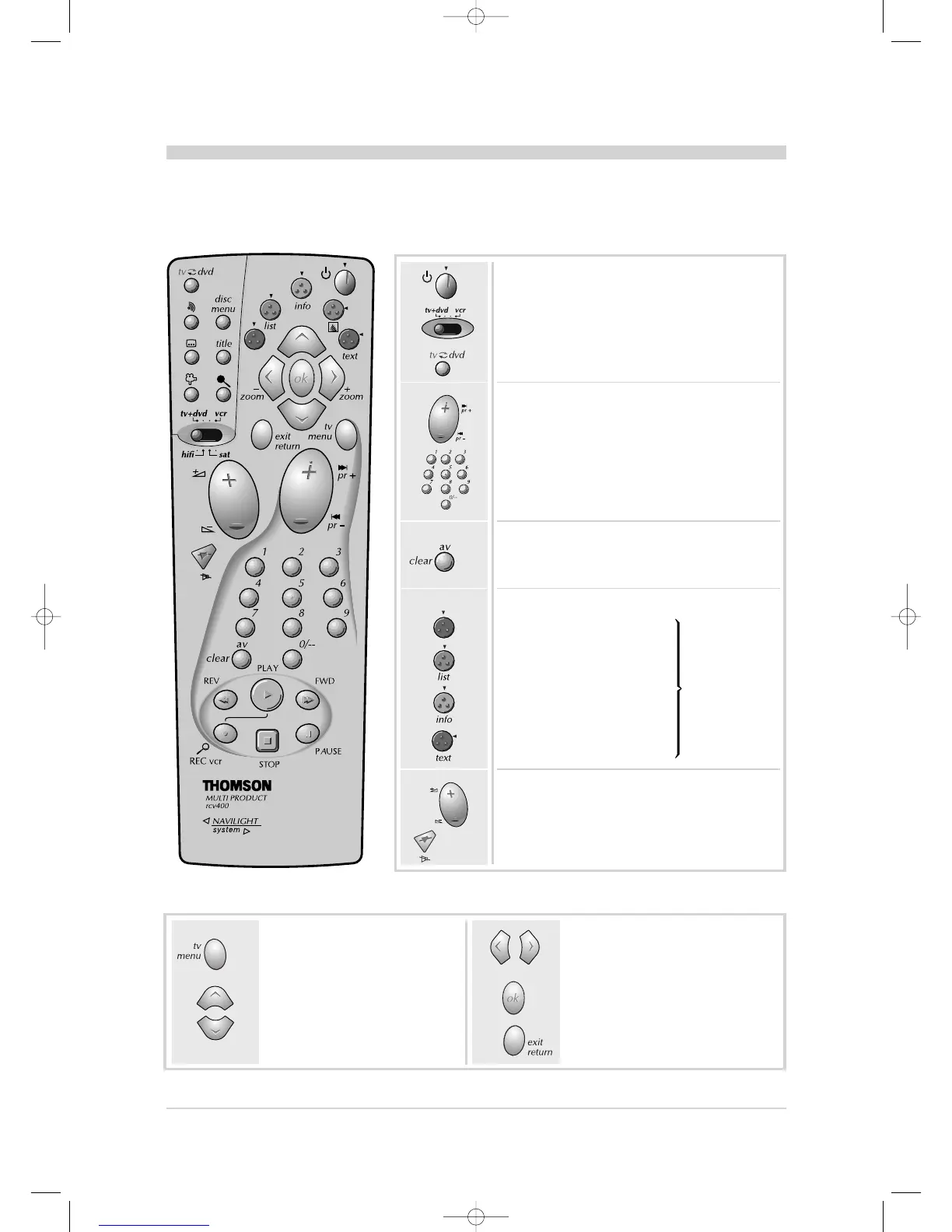 Most of your TV/DVD’s functions are available via the menus that appear on the screen.The remote control supplied