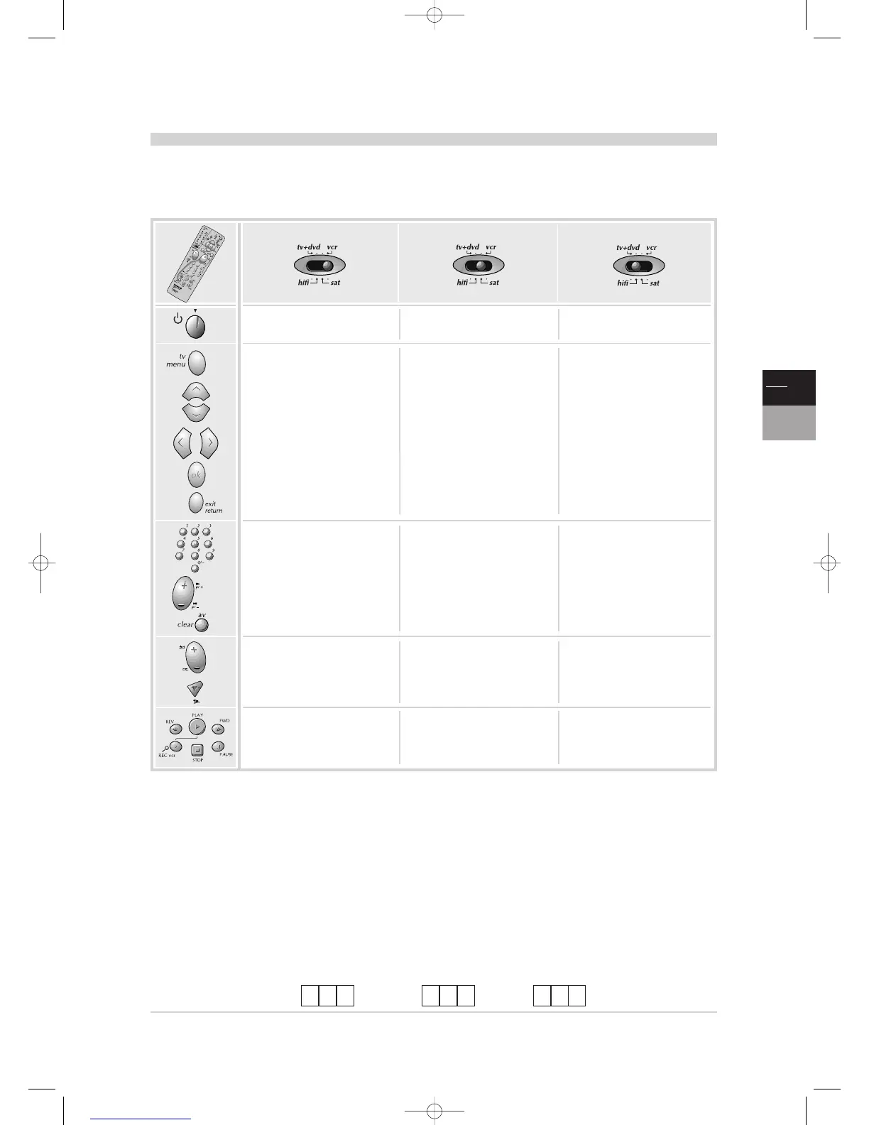 controls can be used for other equipment, such as video recorders, DVD players, satellite receivers or Hi-fi systems.