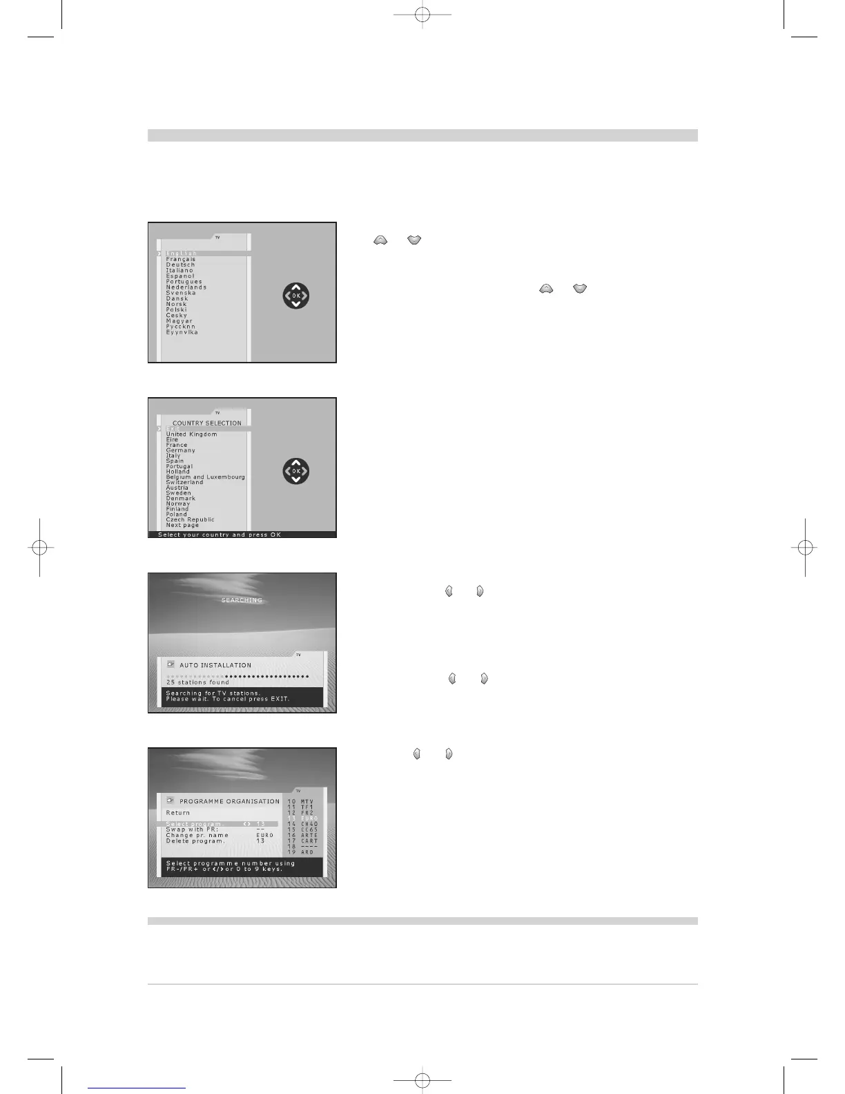 Follow the instructions on the screen.Use a TV programme magazine to identify the various
