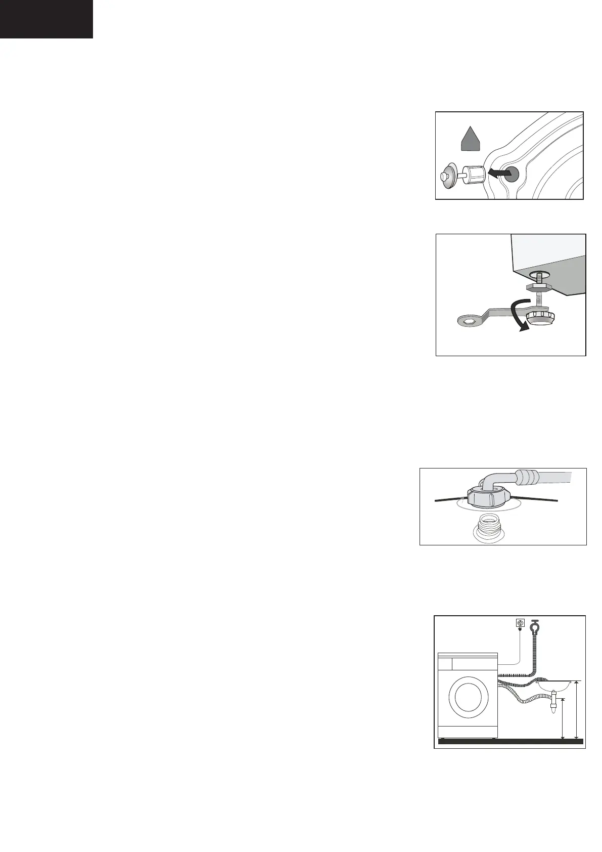 The water drain hose should be mounted at a height of minimum 60 cm, maximum 100 cm from
