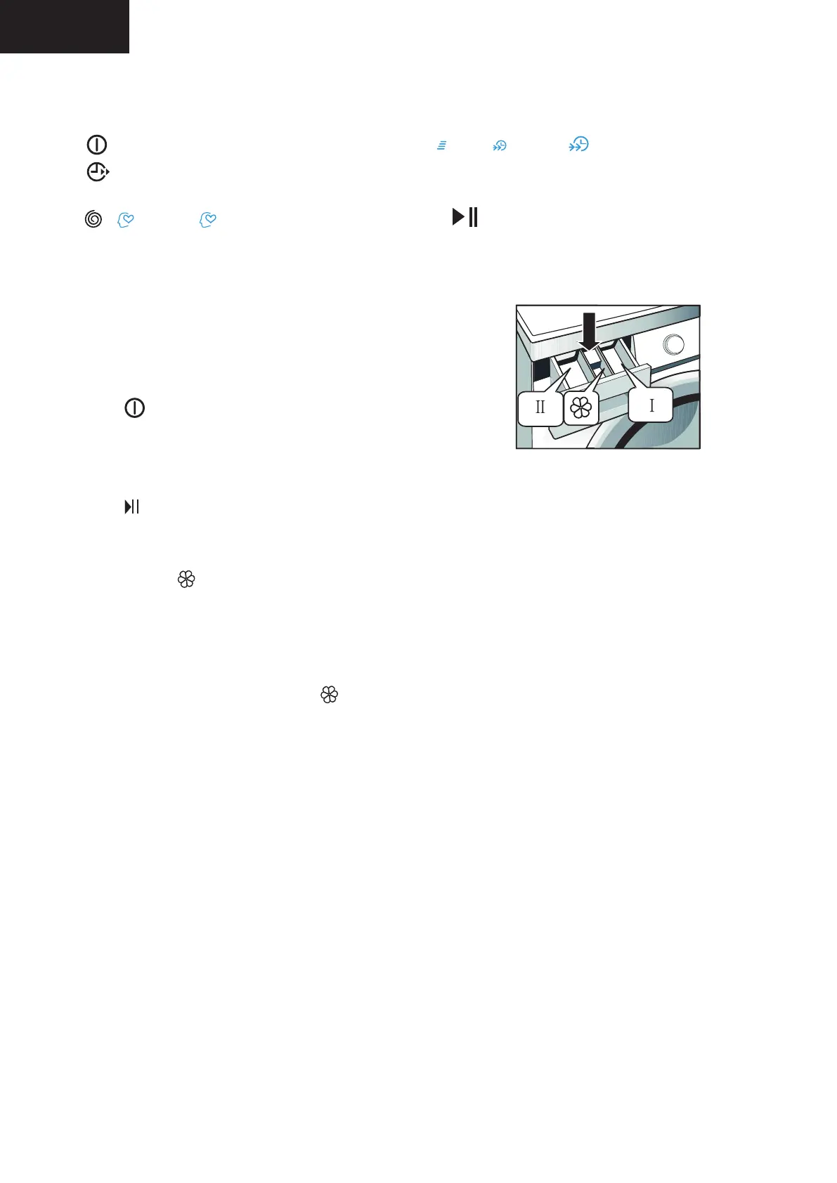 - For slightly dirty clothes, do not pre-wash and put a small amount of detergent in the compartment II