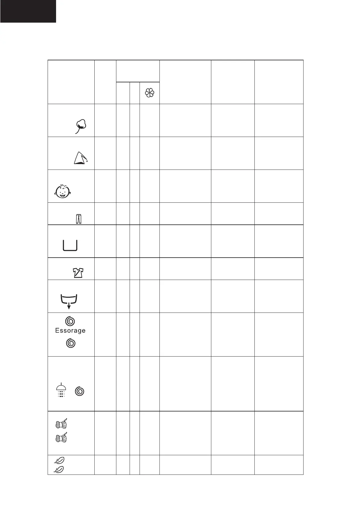 THOMSON TW 814 - WASH PROGRAMME GUIDE; Programme Selection Chart