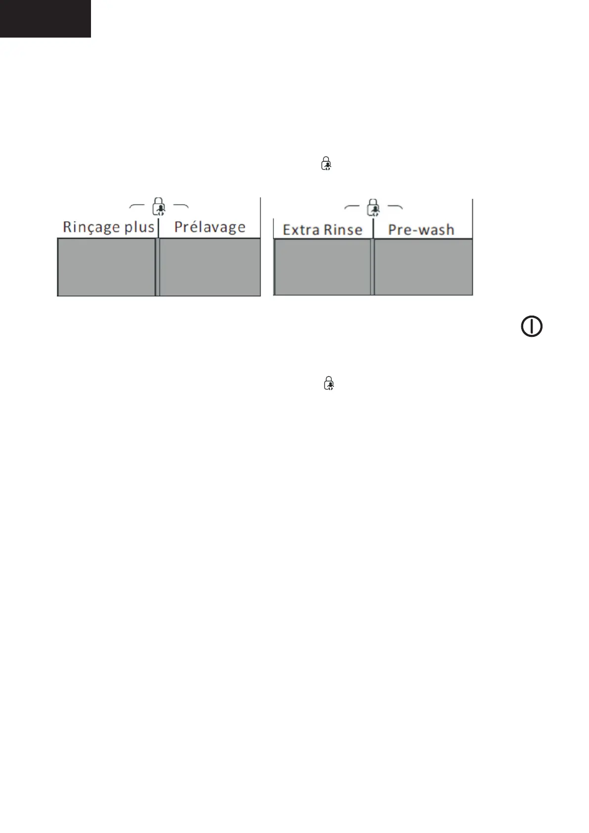 Druk en houd Extra Rinse/Rinçage plus en Prewash/Prélavage tegelijkertijd circa 3