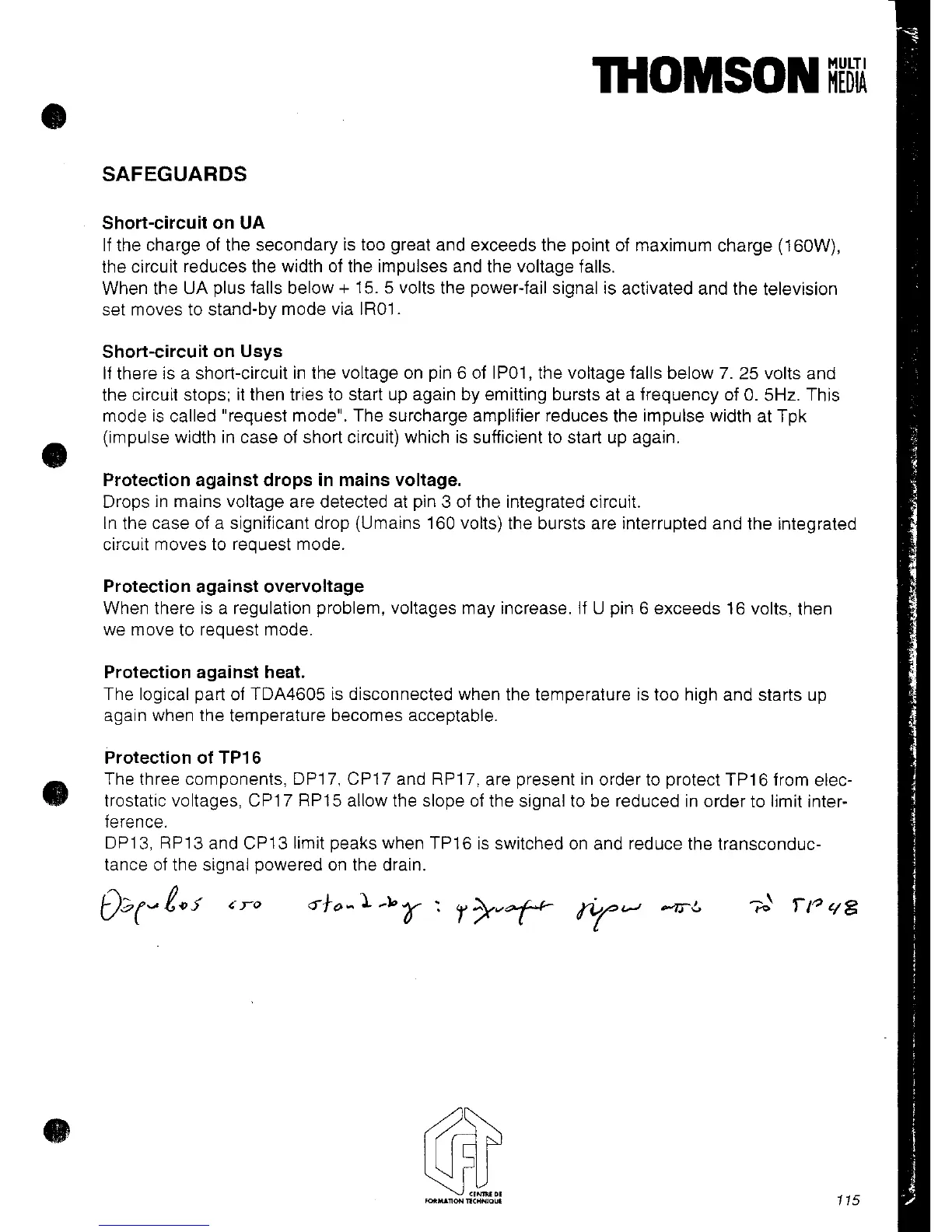 THOMSON TX92F - Safeguards; Short Circuit on UA; Short Circuit on Usys; Protection against Overvoltage