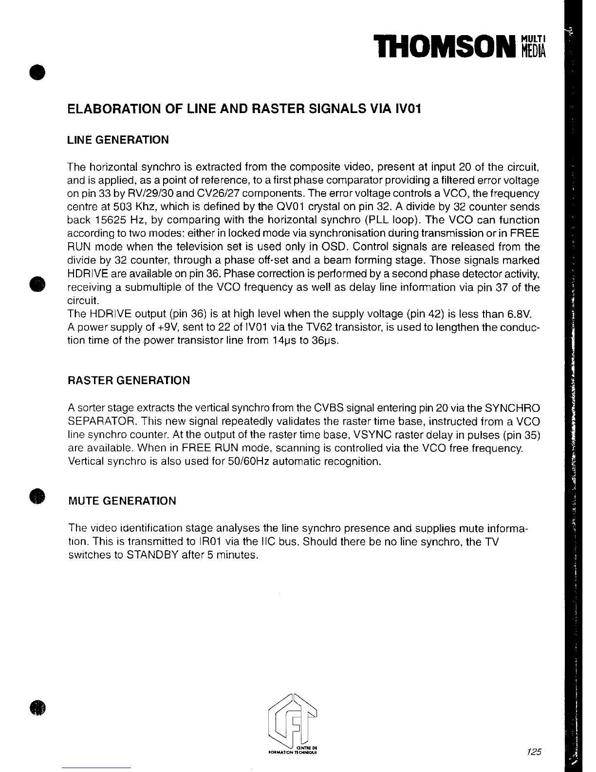 THOMSON TX92F - Elaboration of Line and Raster Signals Via IV01; Line Generation; Raster Generation; Mute Generation