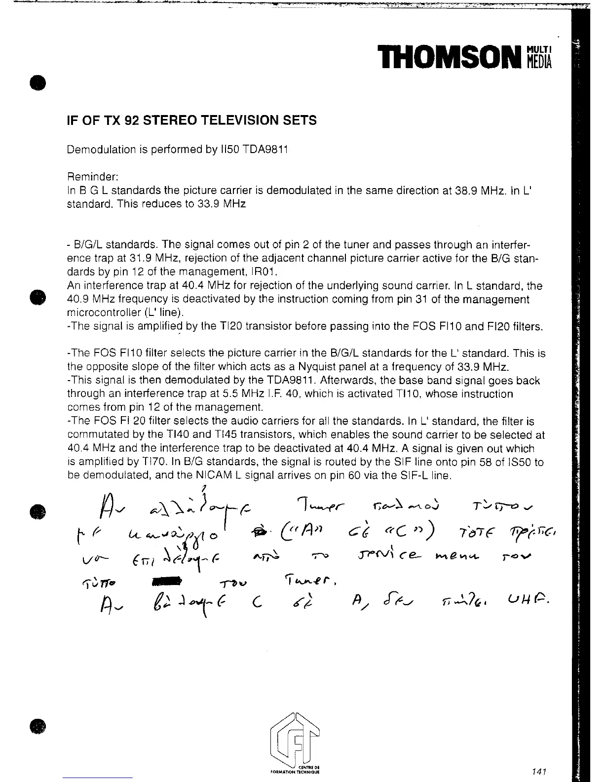 THOMSON TX92F - If of TX 92 Stereo Television Sets