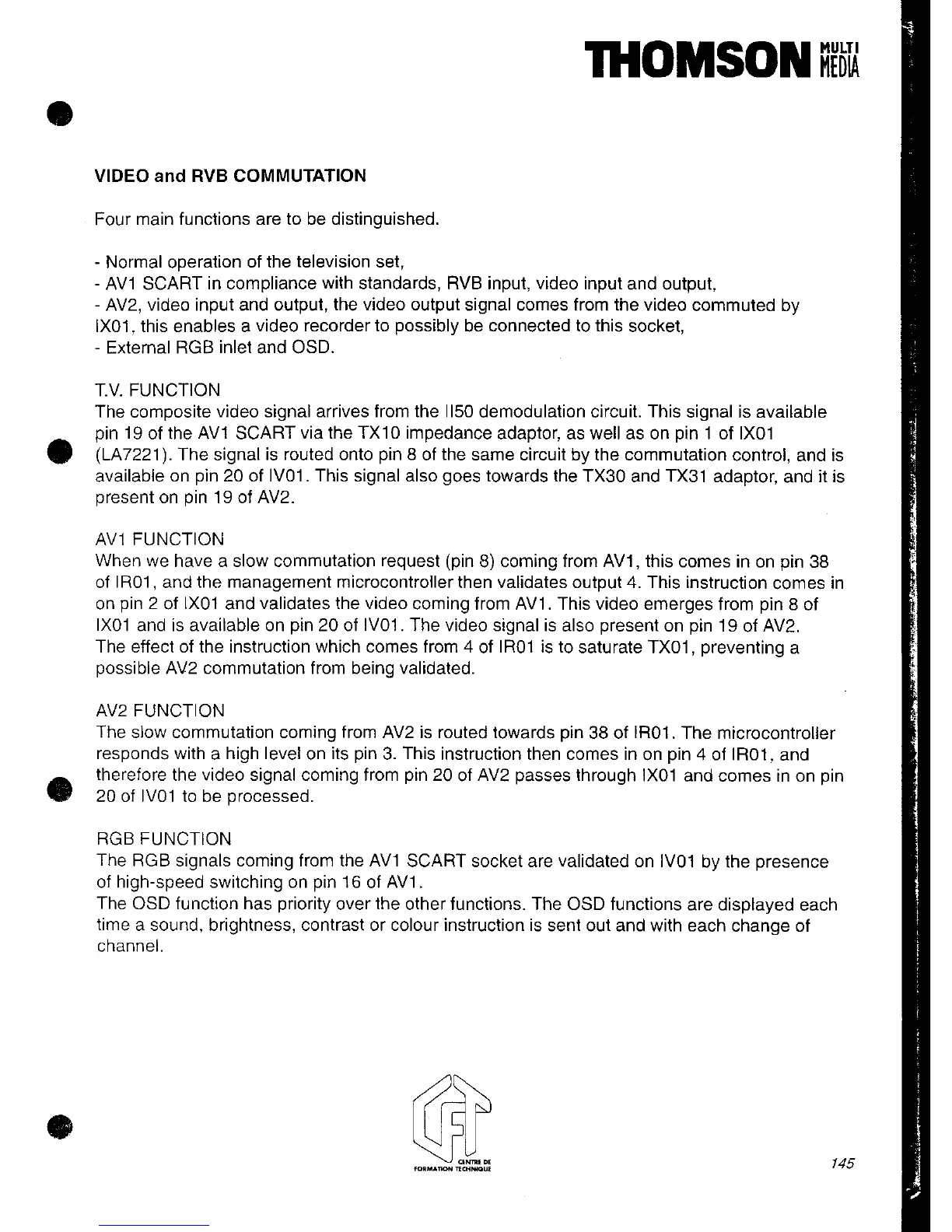 THOMSON TX92F - Video and RVB Commutation; T.V. Function; AV1 Function; AV2 Function