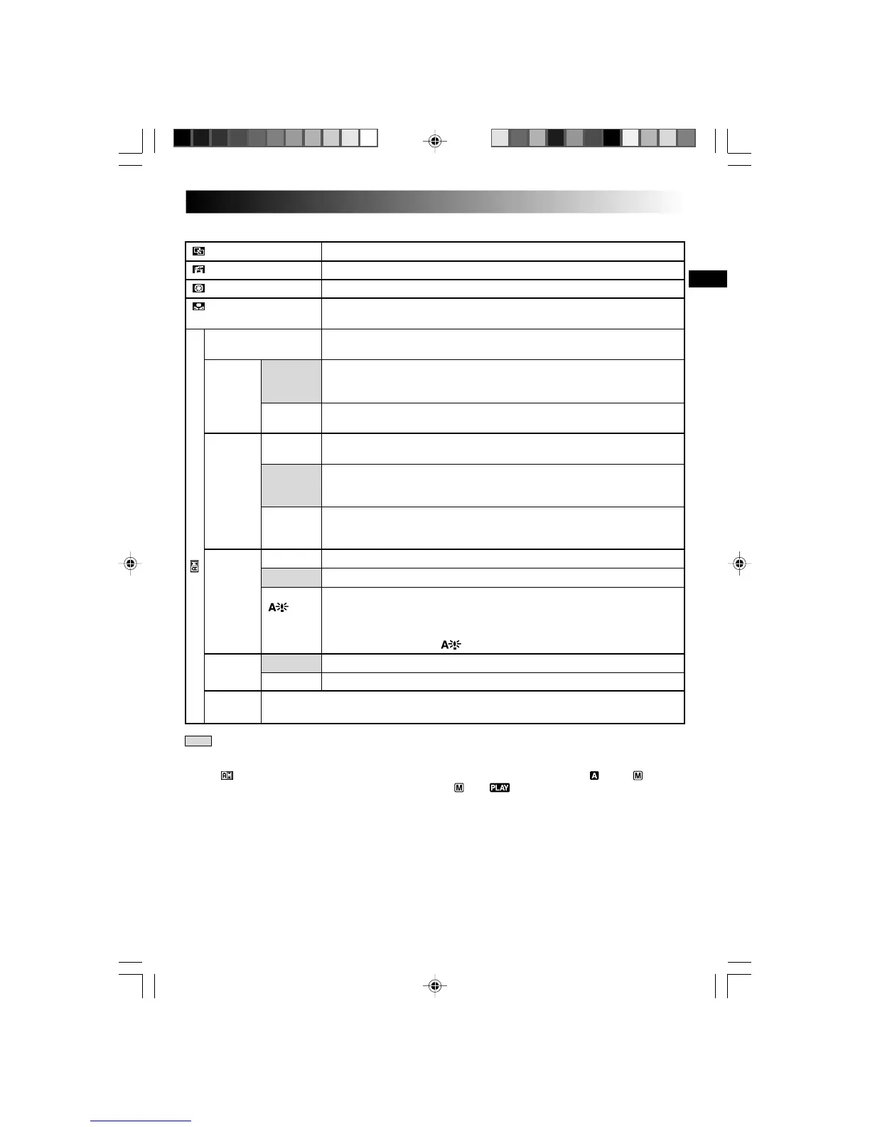 The “ CAMERA MENU” settings are effective when the Power Switch is set to both “ ” and “ ”.