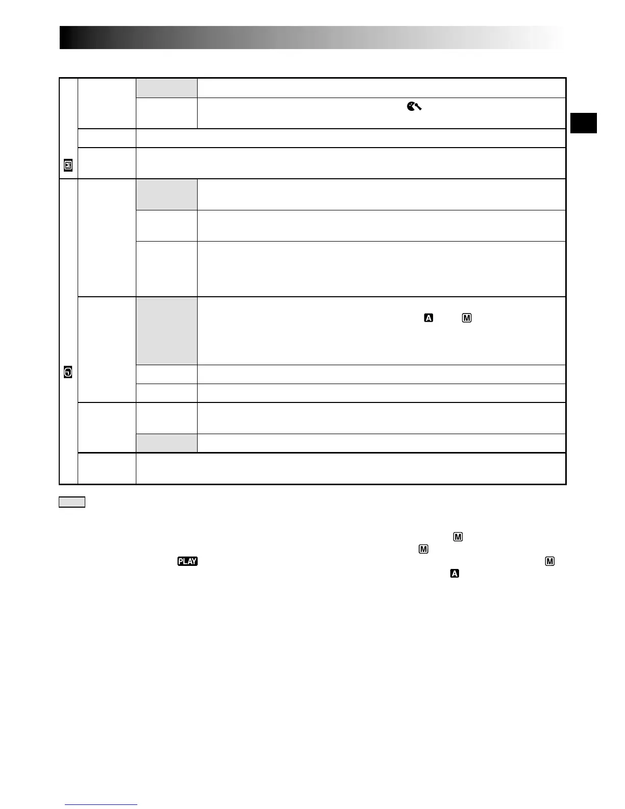 The “MANUAL MENU” settings are effective only when the Power Switch is set to “ ”.