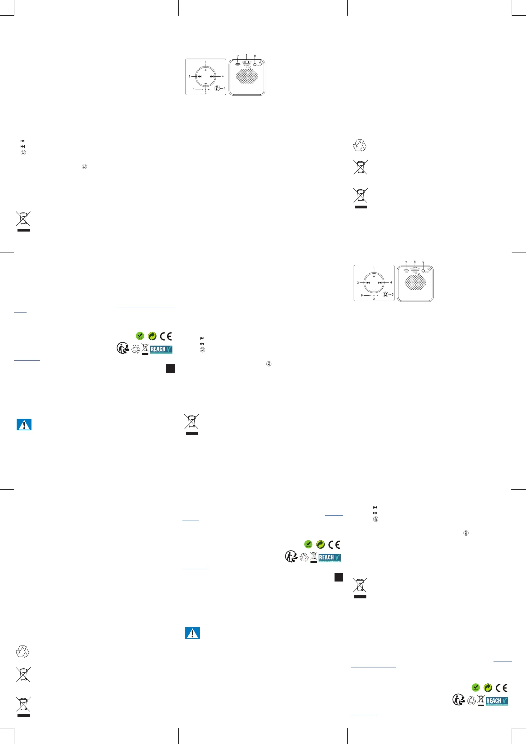 • Botón “ ”: Pulse brevemente para reproducir música o ponerla en pausa.