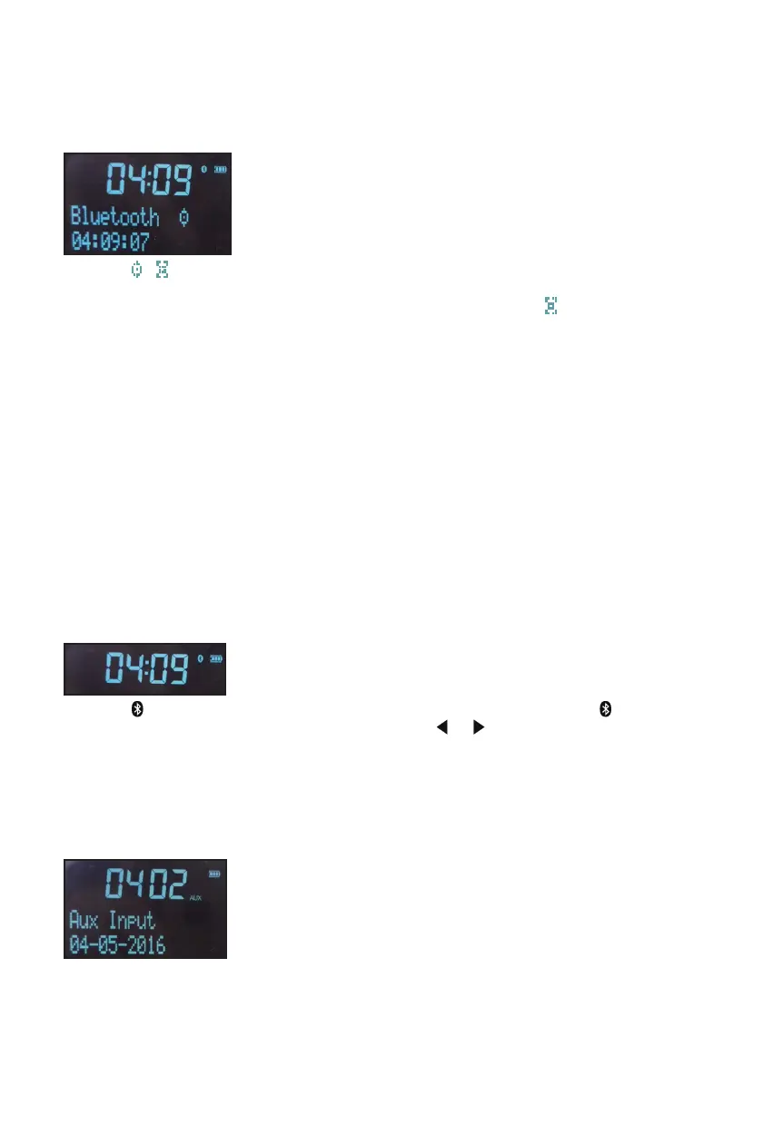 Pulse el botón DAB/FM/AUX para cambiar al modo AUX. En la pantalla se indicará la siguiente