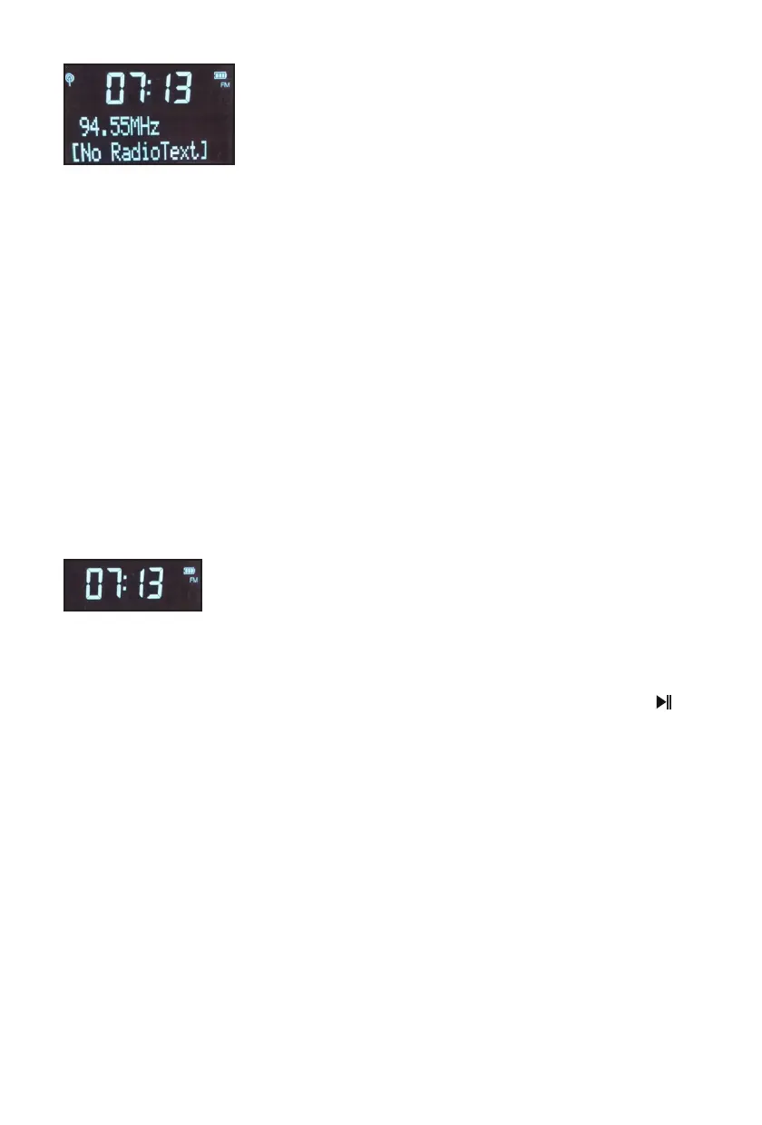 Premere brevemente il pulsante "MODE" per attivare la modalità FM; sul display apparirà l'orologio e
