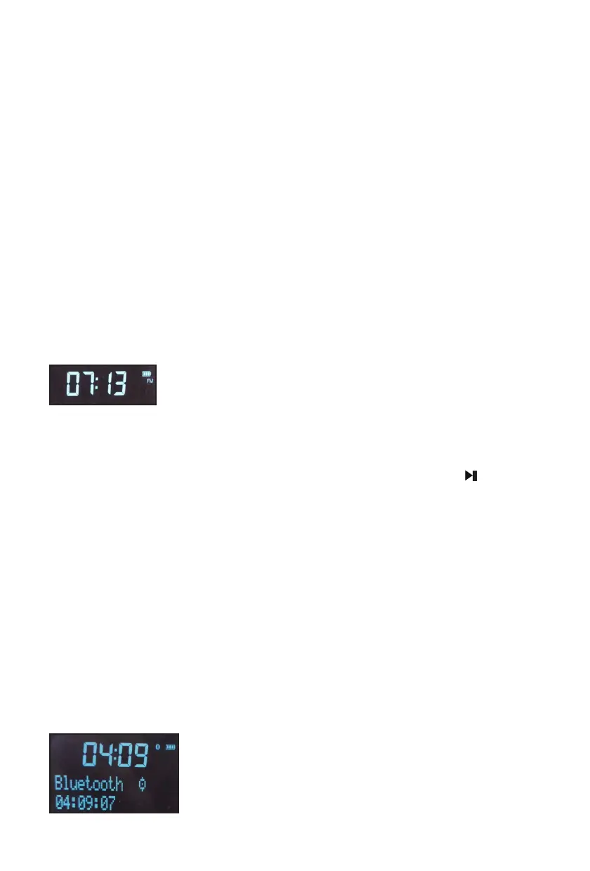 Prima o botão MODE para entrar no modo FM. O ecrã LCD apresenta as horas e o sinal FM conforme