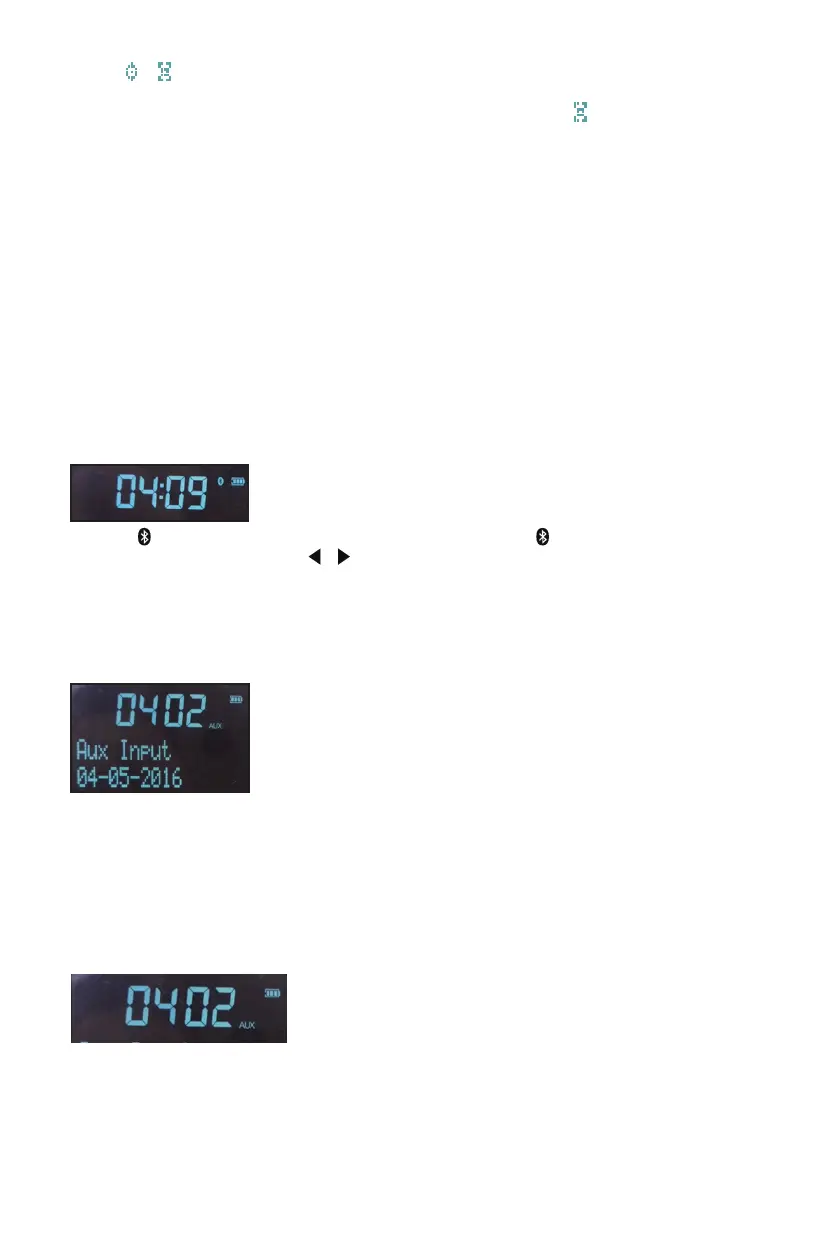 Prima o botão "MODE" para passar para o modo BT. O LCD apresenta o modo BT e as horas,