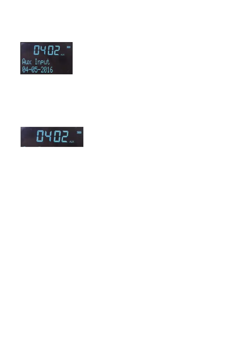 apparaissent le mode AUX et l'heure comme ci-dessous :