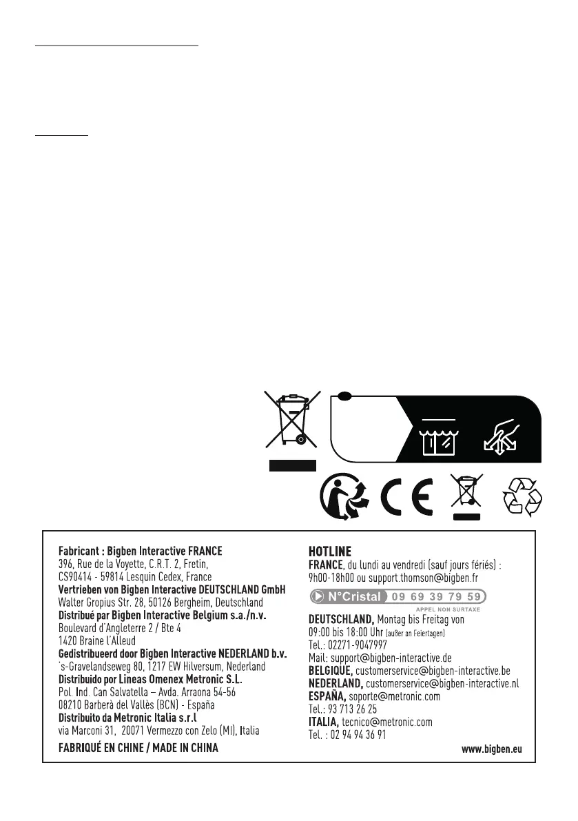 Il prodotto è garantito da Bigben per un periodo di due anni dalla data di acquio ad esclusione