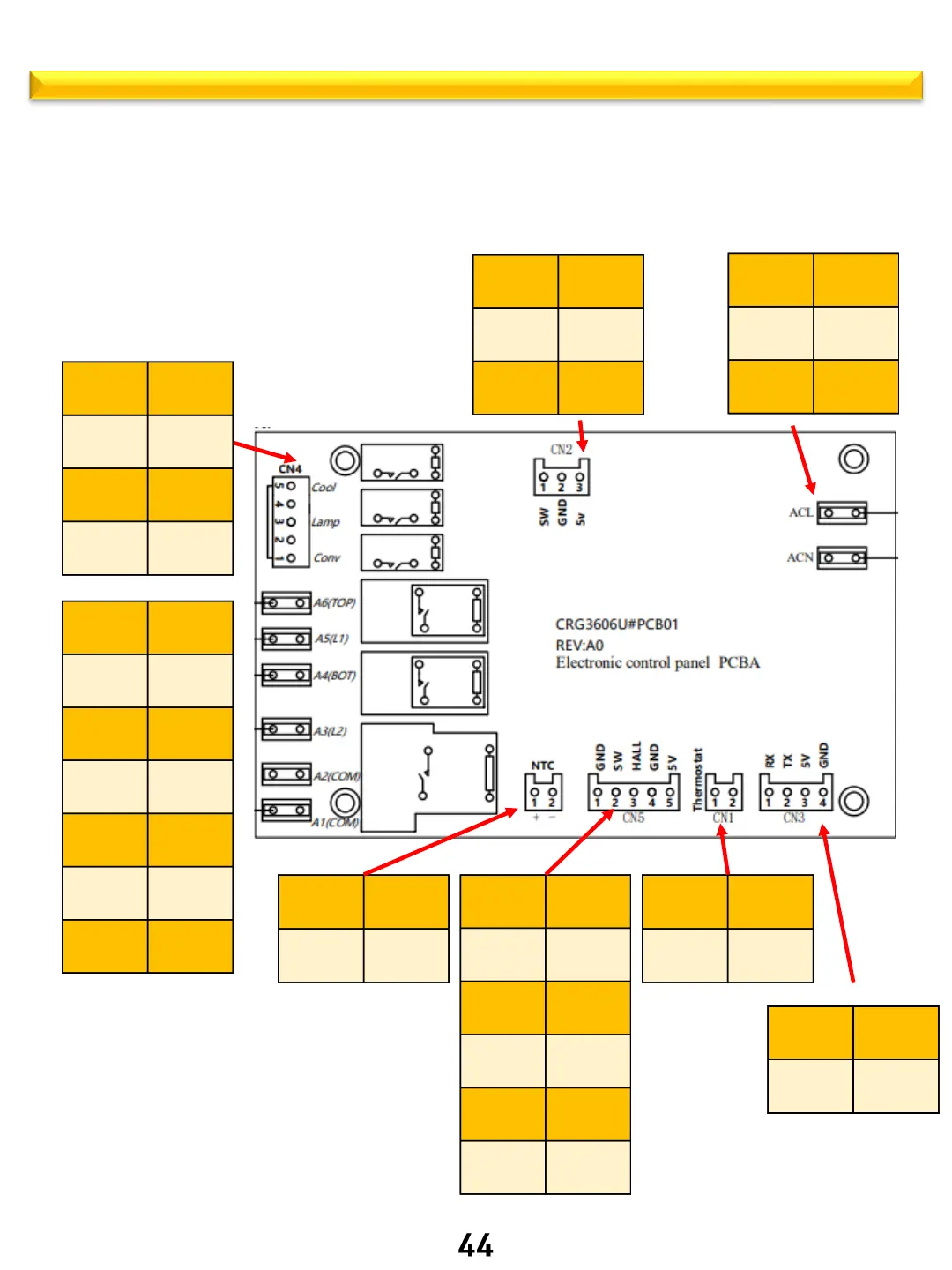 Thor Kitchen ARE30 - ARE - PCB terminal locations; Relay PCB ARE30;ARE36 Part number