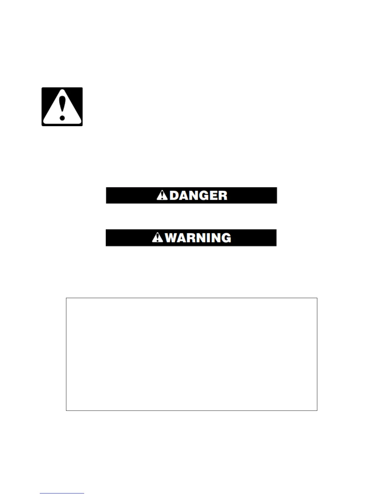 follow the safety alert symbol and either the word “DANGER” or ‘WARNING’.