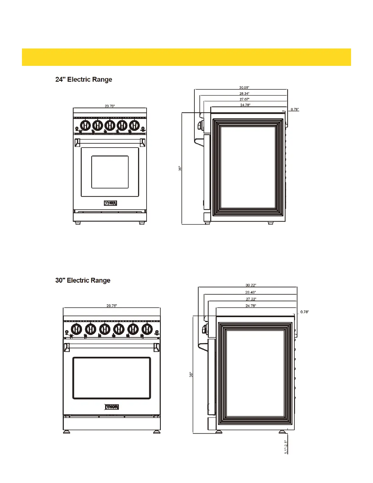 Thor Kitchen HRE Series - PRODUCT DIMENSIONS; 24 Electric Range; 30 Electric Range