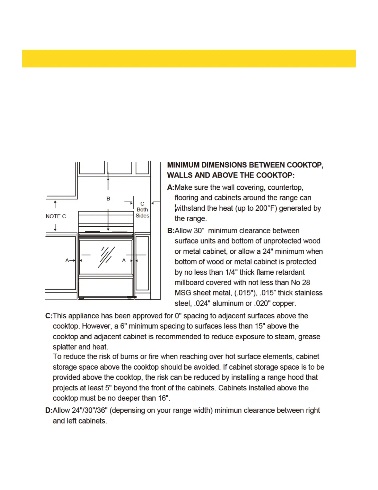 Thor Kitchen HRE Series - PREPARING TO INSTALL THE RANGE; Minimum dimensions