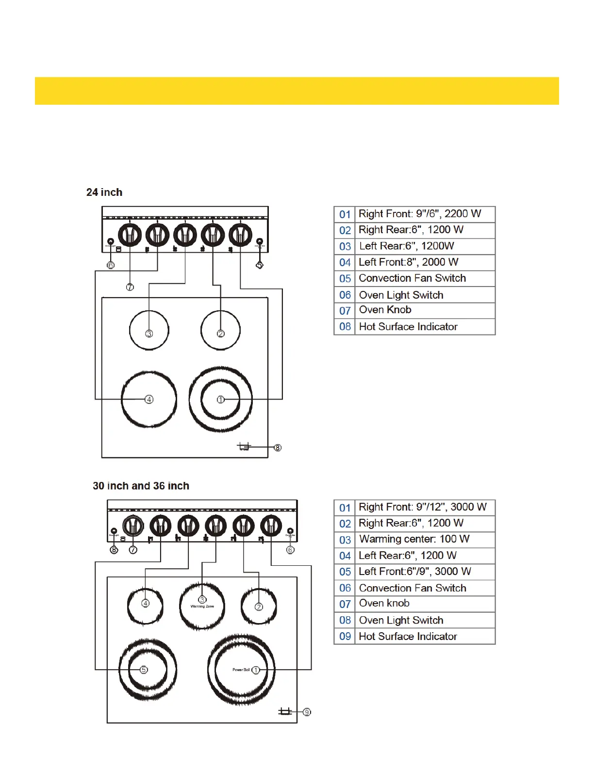 Thor Kitchen HRE Series - Location of the radiant surface elements and controls