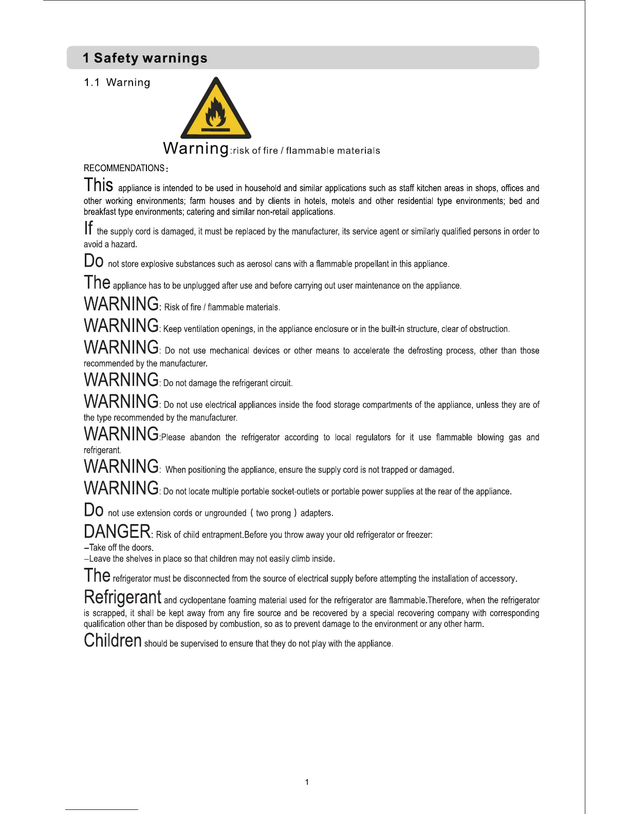 Thor Kitchen HRF3602 - Safety Warnings; 1.1 Warning
