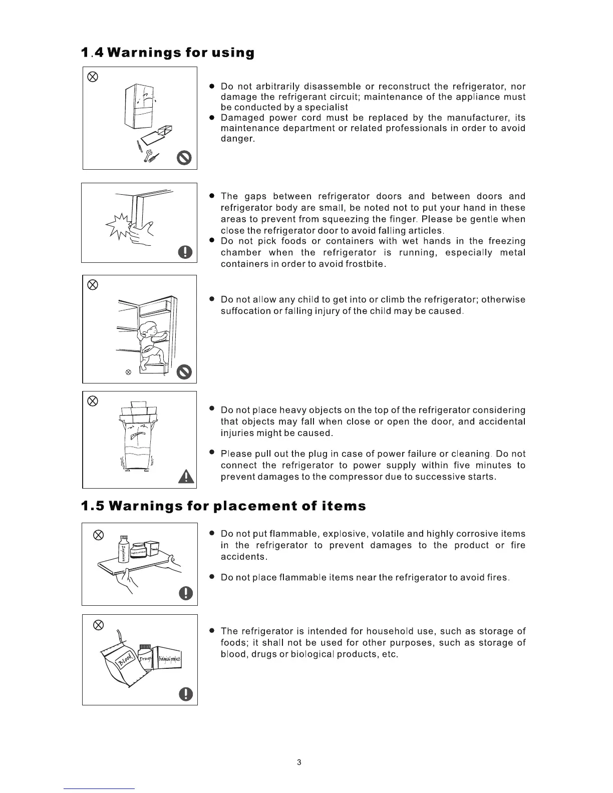 Thor Kitchen HRF3602 - 1.4 Warnings for Using; 1.5 Warnings for Placement of Items