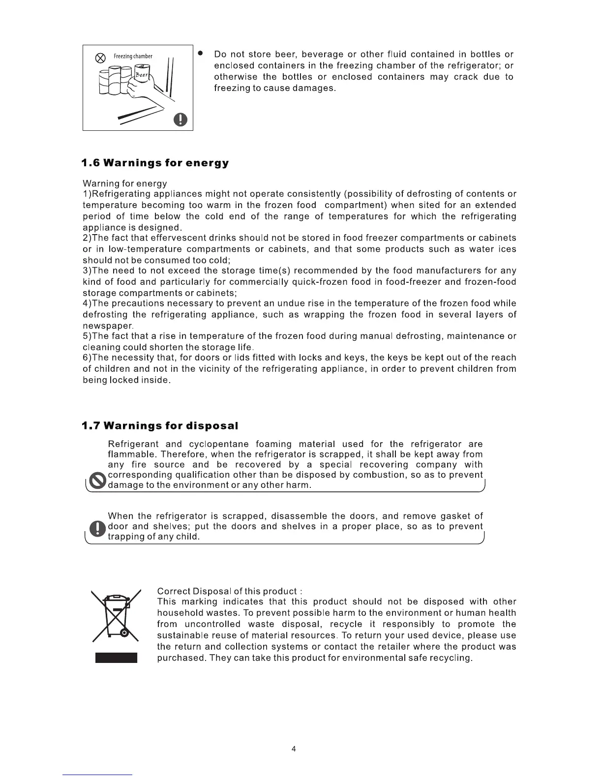 Thor Kitchen HRF3602 - 1.6 Warnings for Energy; 1.7 Warnings for Disposal