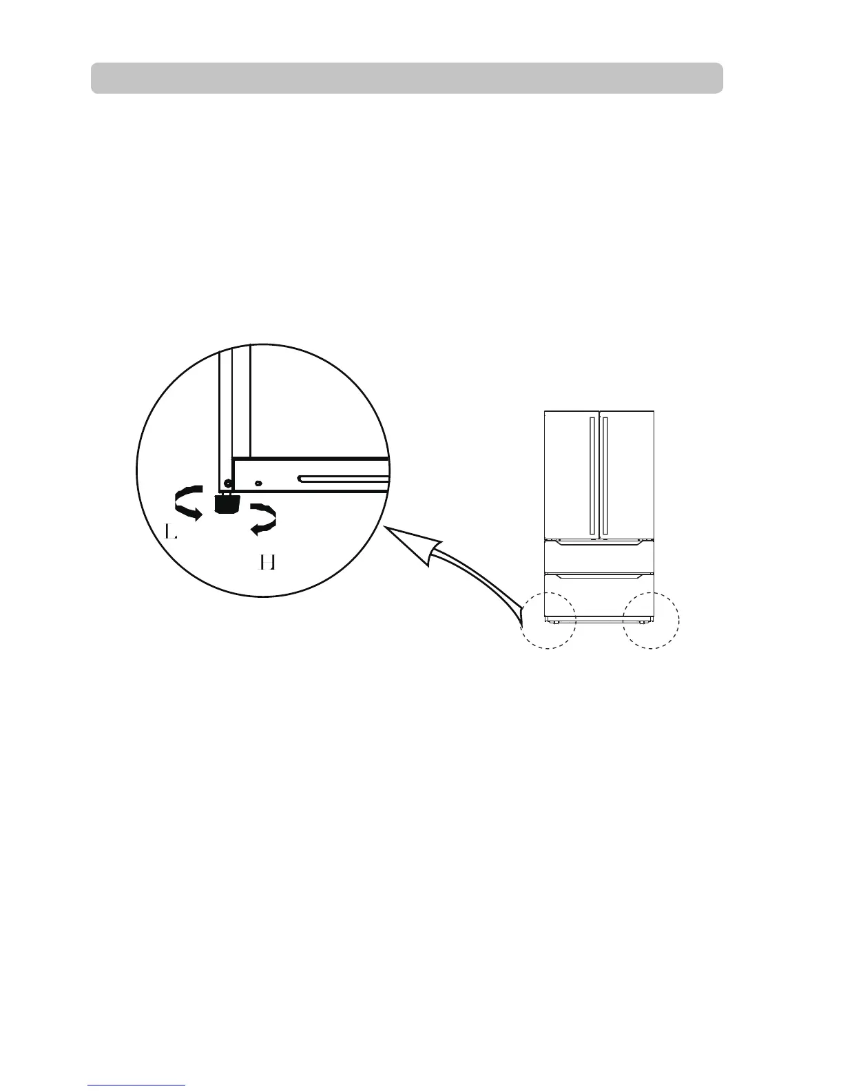 b. Turn the feet counterclockwise to lower the refr igerator;