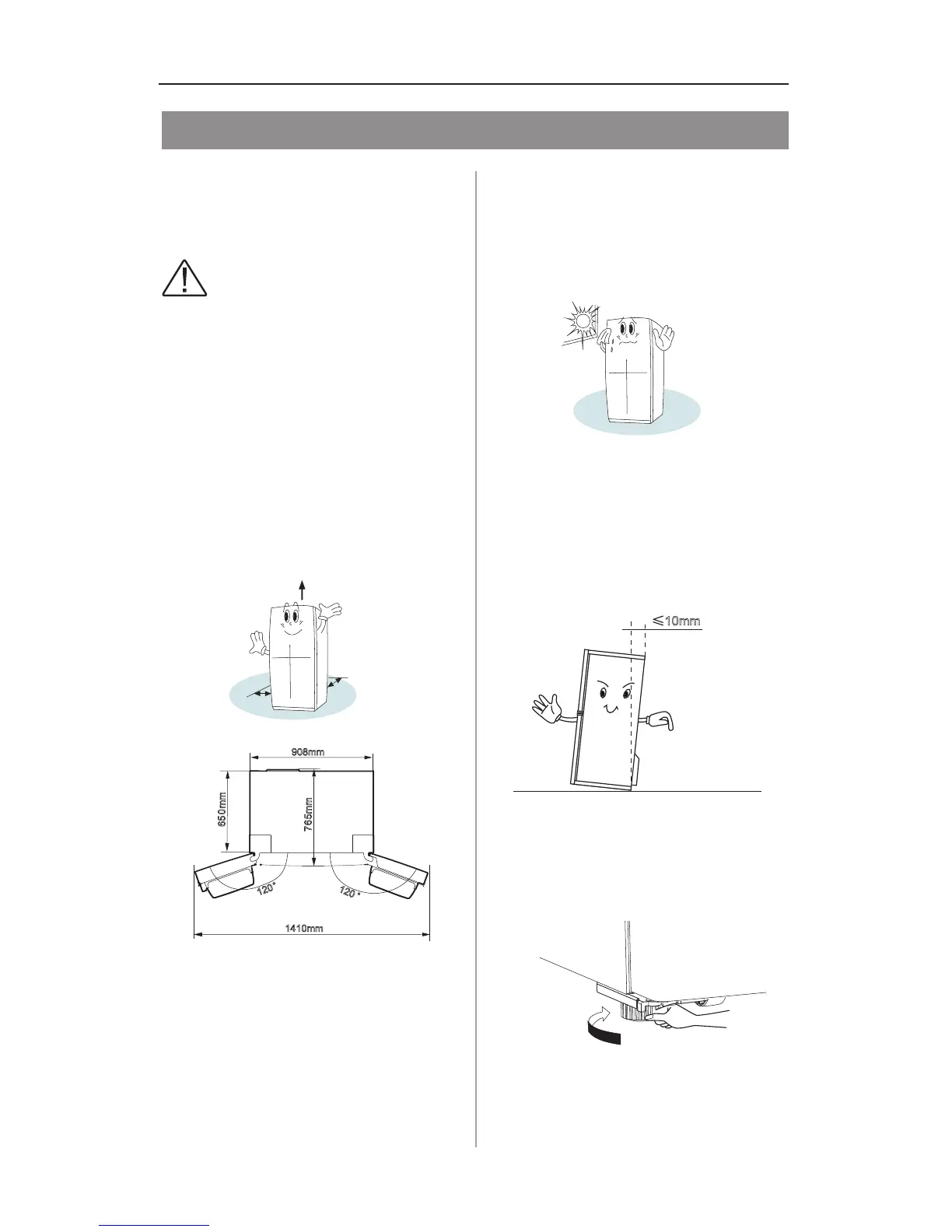wall and a clear space in front to allow