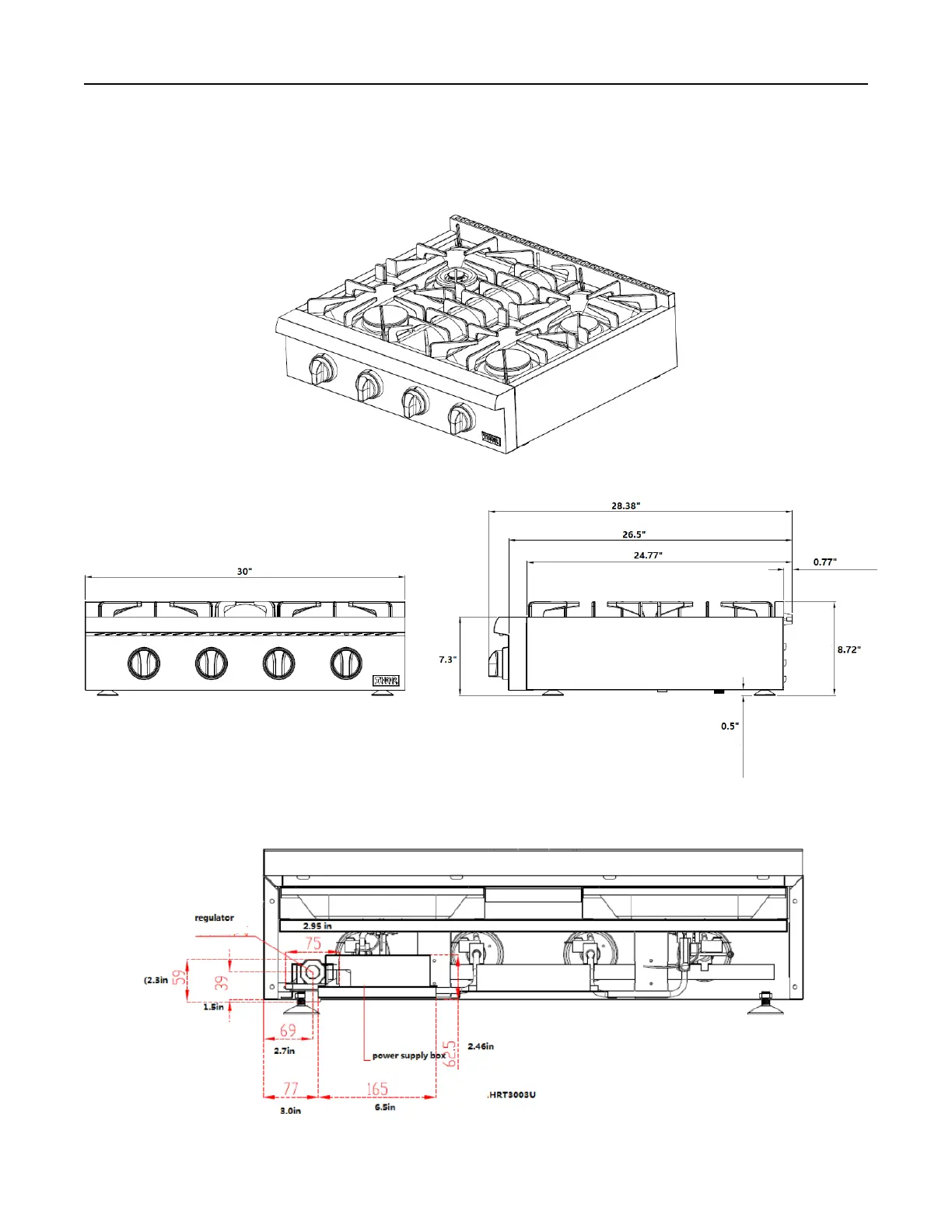 Back Layout from the back panel Regulator is located on the back left of the range top (back