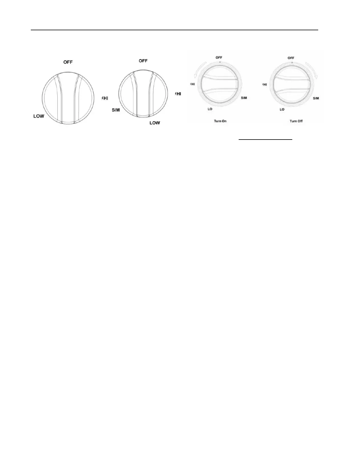 NOTE: When one burner is turned to the “HI” position, the burner igniters will park. Do not